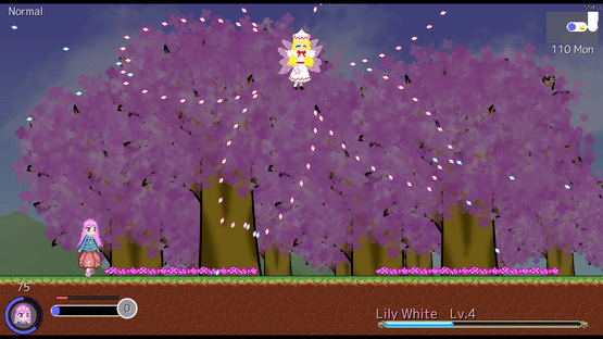 A 2D exploration danmaku action Touhou fangame (AKA a danmaku Metroidvania). Control Hata no Kokoro in a journey to find her masks. Look for power-up items along the way and challenge powerful bosses to reclaim them!