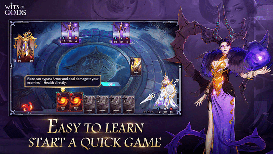Wits of Gods is a multiplayer turn-based strategy card game. The game uses a shared deck and you do NOT need to build a deck. The rules are simple. Play your hand during your turn to operate your deity and up to 3 pets. We recommend that you start with a 2V2 mode (2 players vs 2 players).