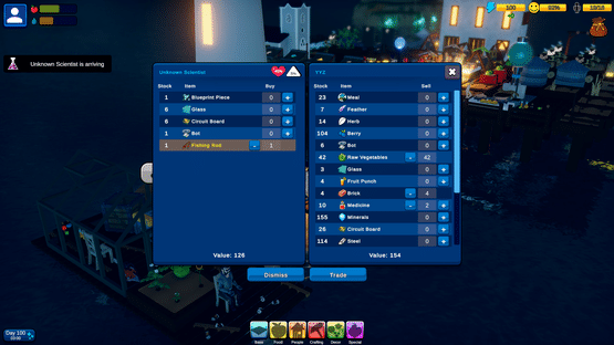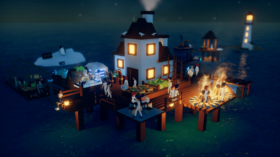 A simulation game where you build a town in the middle of the sea. Reach self-sufficiency, invite travelers to join you, then manage their needs and research new facilities to keep them happy. Build a submarine and discover islands to produce increasingly complex resources.