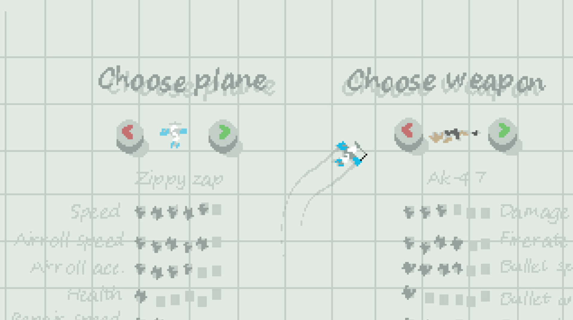 A Clumsy Flight is a 2D action-roguelike with a focus on dodging enemy planes and upgrading your equipment. Shoot down swarms of planes to survive your adventure through the clouds. Make smart upgrade decisions along the way to not get submerged by the hundreds of enemies coming your way.
