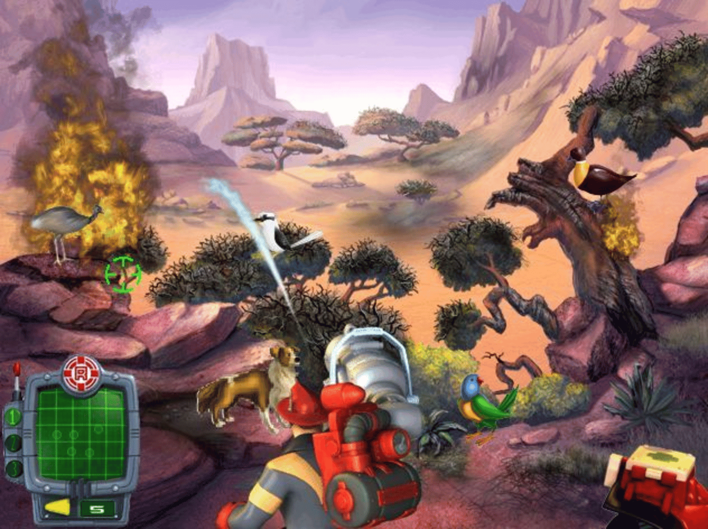 Rescue Heroes: Meteor Madness is another in the Fisher-Price Rescue Heroes Series, this one is aimed at children in the 4-7 age range. The story behind the game is that the earth has been struck by a cluster of meteors that have done damage in specific areas. It is the Rescue Heroes task to travel to the trouble spots and rescue people who are trapped. There are four hot spots to be dealt with, each representing a different mini game featuring different heroes. Each game has three levels of difficulty, trainee, specialist and expert, with each level of difficulty having more people and animals in need of rescue. The player can change the difficulty if they find the game too hard or too easy. When all missions have been completed the game unlocks one of a series of printable pictures which the player is invited to colour in.