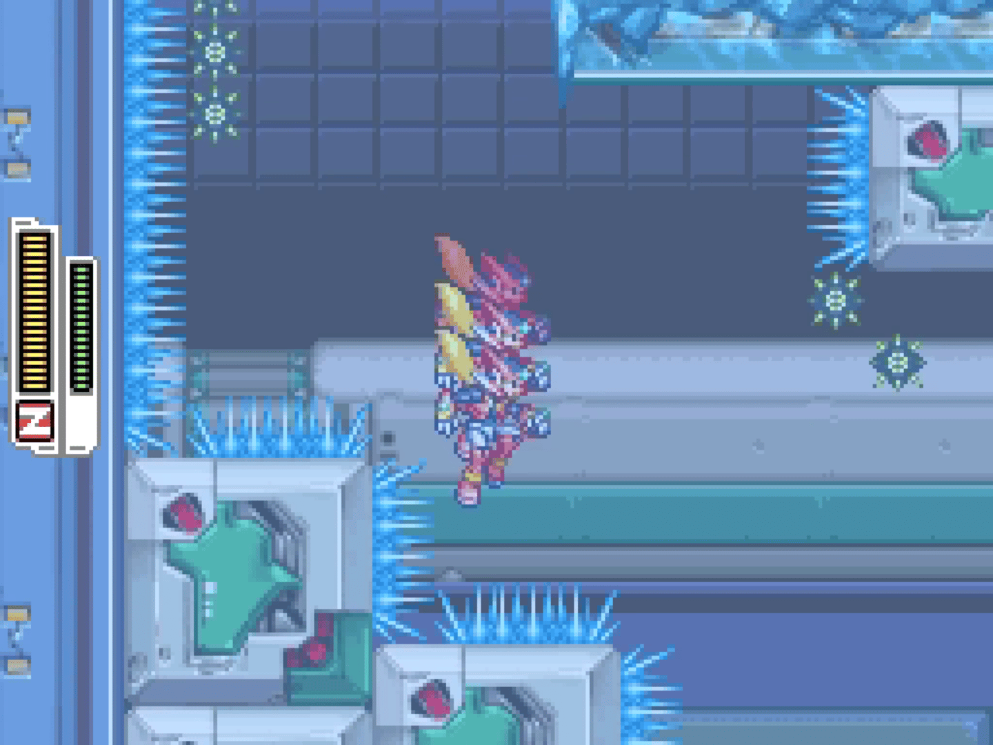 Rockman ZX Prequel – a fan-game set 200 years before the events of Rockman ZX – quickly become a favorite among Chinese-speaking Mega Man communities. Unique to ZX Prequel, though, is a light/dark world system. In the light world, you'll occasionally run into virus-infected mechaniloids. However, in the dark world, ALL enemies will be infected. Light or dark, enemies infected with the virus are said to be stronger than the norm. A gauge at the top of the screen shows you just how bad the outbreak is in your current position.