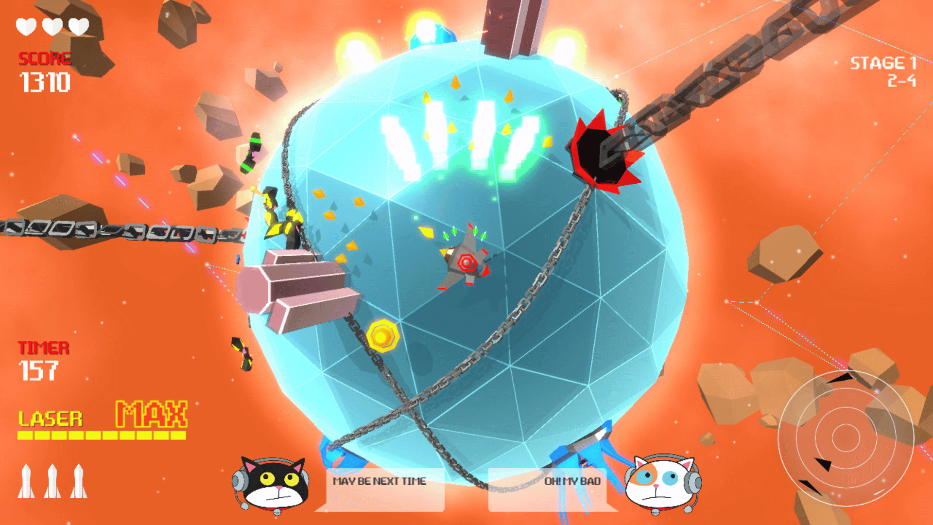 This twin stick shooter is about Neko fighting with their all cost. In 2565 UC. the Cosmos has been altered by MadBotz gang. The last hope is rely on the Neko Cosmo Police team, "Kuro" and "Shiro"