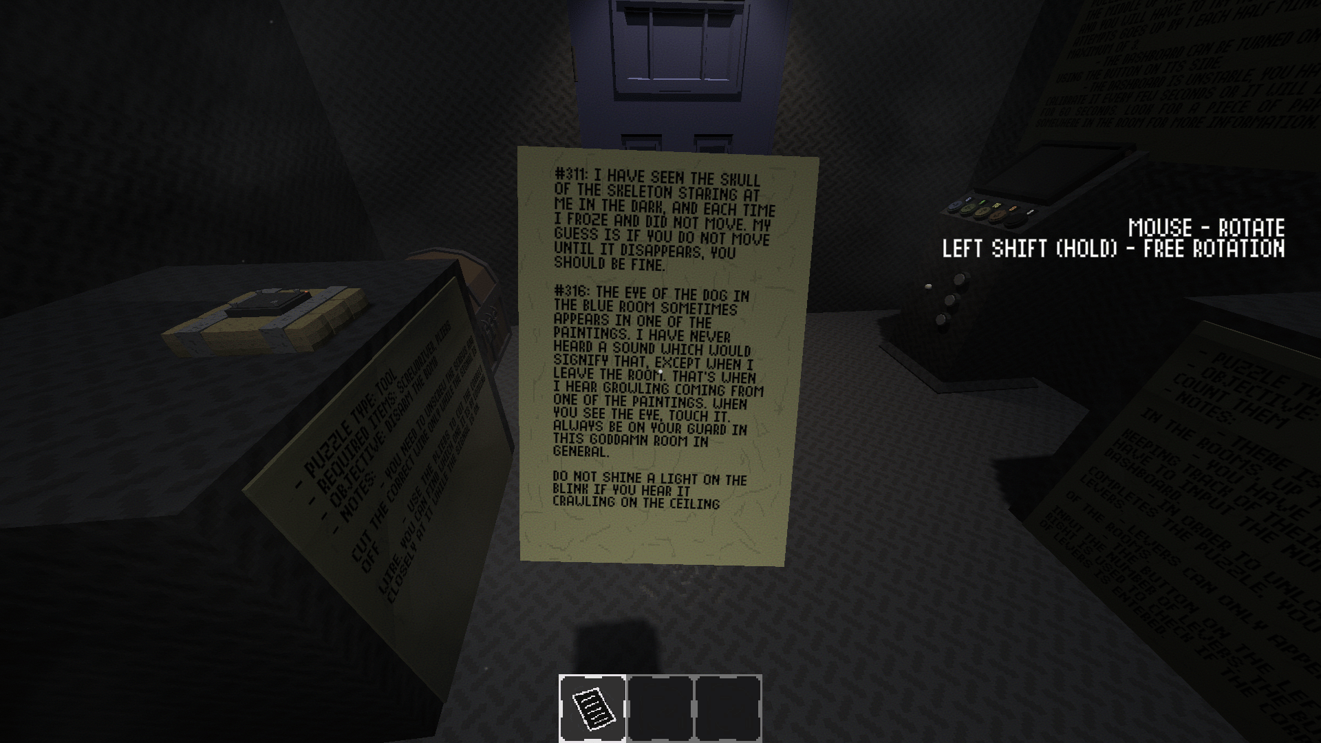 An extremely challenging horror game where you solve puzzles to escape while being hunted and toyed with by monstrosities.