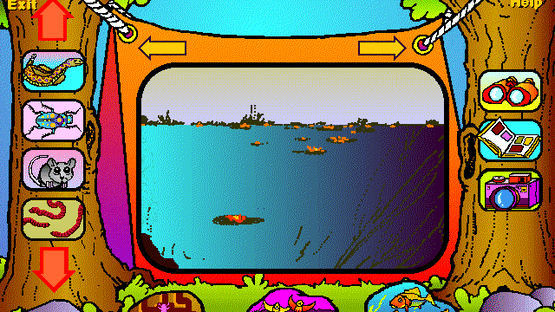 Gus Goes to Cyberstone Park is an educational game for children between three and eight. The player can explore five locations and trigger animations by clicking on items on screen. Gus' three buddies are hiding in each screen and speak/sing to the player when found. Each location additionally has an activity: Trees: The player has to navigate Gus through a top-down maze. Mountains: The player has to solve equations (addition and subtraction) in four difficulty levels. On the easiest level, the nine digits have to be clicked on in the correct order. Lake: Sorting animals into their correct habitat (earth, forest or water) River: Animals float on the river and each of them holds a sign with a letter. The player has to click on the starting letter of the given word. There are four difficulty levels. Camp: The player is given an incomplete campfire story and has to complete them by dragging icons on the blank spaces. There are no right or wrong choices.