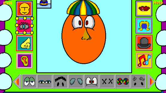 Gus Goes to the Kooky Carnival is an educational game for children between three and eight. The player can explore six locations and trigger animations by clicking on items on screen. Gus' three buddies are hiding in each screen and speak to the player when found. Each location except the Ferris wheel additionally has an activity: Trailer: There is a map of the United States to America to find. By clicking on a state, the player learns a fact about the state. Animal Lounge: A card game with similarities to Concentration / Memory variants. Each of the two players have matching cards except one which is only present once. Each player chooses one of the other players' cards in turns and has to match them to one of their own cards. If they match, the cards are removed from play. If It is the single card, the choosing players has to take it into their own deck. It is not possible to click on the wrong card while matching. The player who has the single card in their possession when all other cards are gone loses the match. Side Show: The player can choose various facial features and clothing to create a face. Midway: A shooting range where letters flow into and out of view. The player chooses a letter by clicking on it. Depending on the difficulty level, the goal is to either find a single letter, spell a given word or spell as many words as possible (the next viable word is presented by a icon) within a time limit.