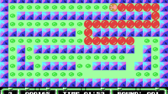 Nibbly '92 is a new version of the classic game Nibbler for the C64. In this game you control a worm named Nibbly and need to eat all drops in the level to proceed. However eating makes Nibbly grow longer.