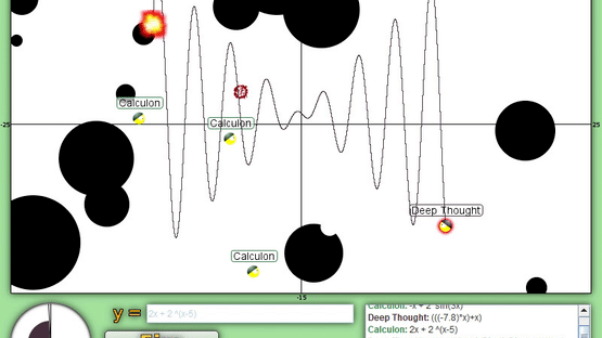 Graphwar is an artillery game in which you must hit your enemies using mathematical functions. The trajectory of your shot is determined by the function you wrote, and your goal is to avoid the obstacles and your teammates and hit your enemies. The game takes place in a Cartesian Plane.