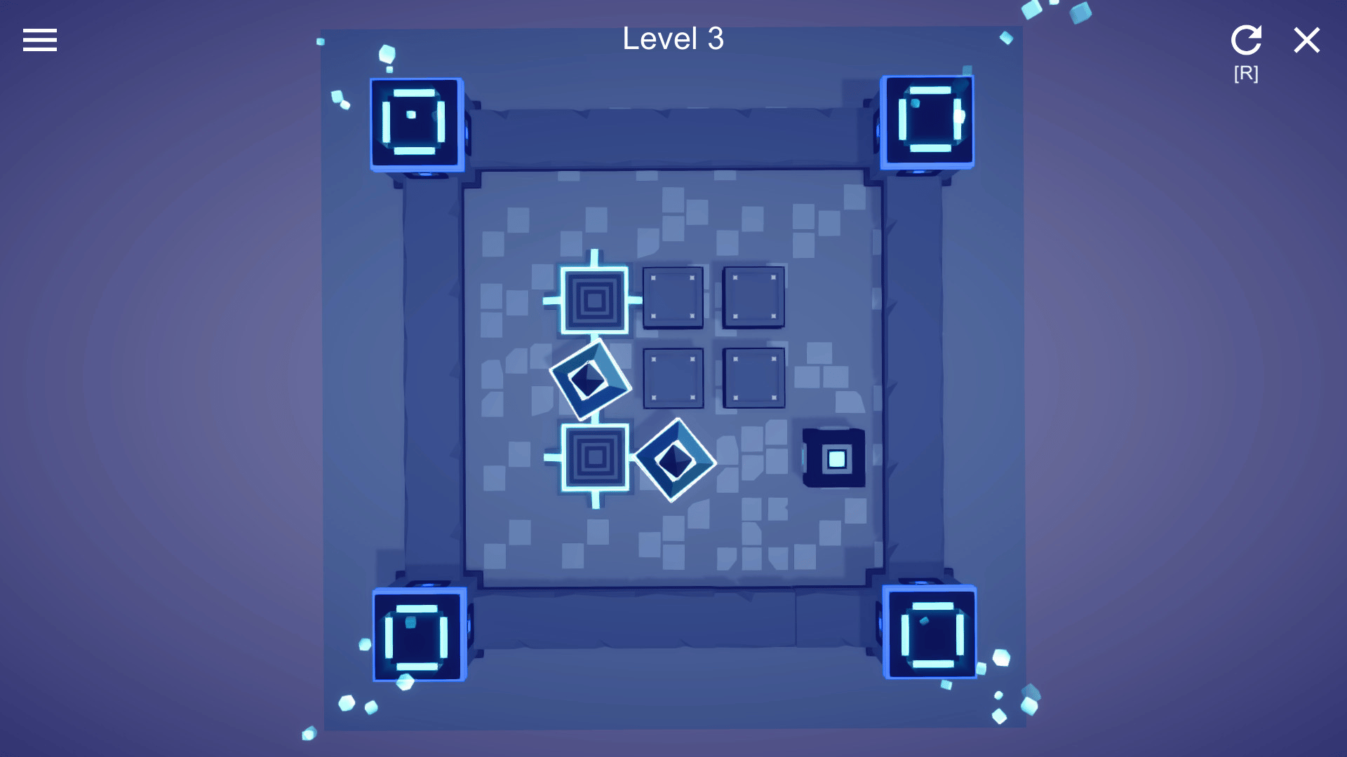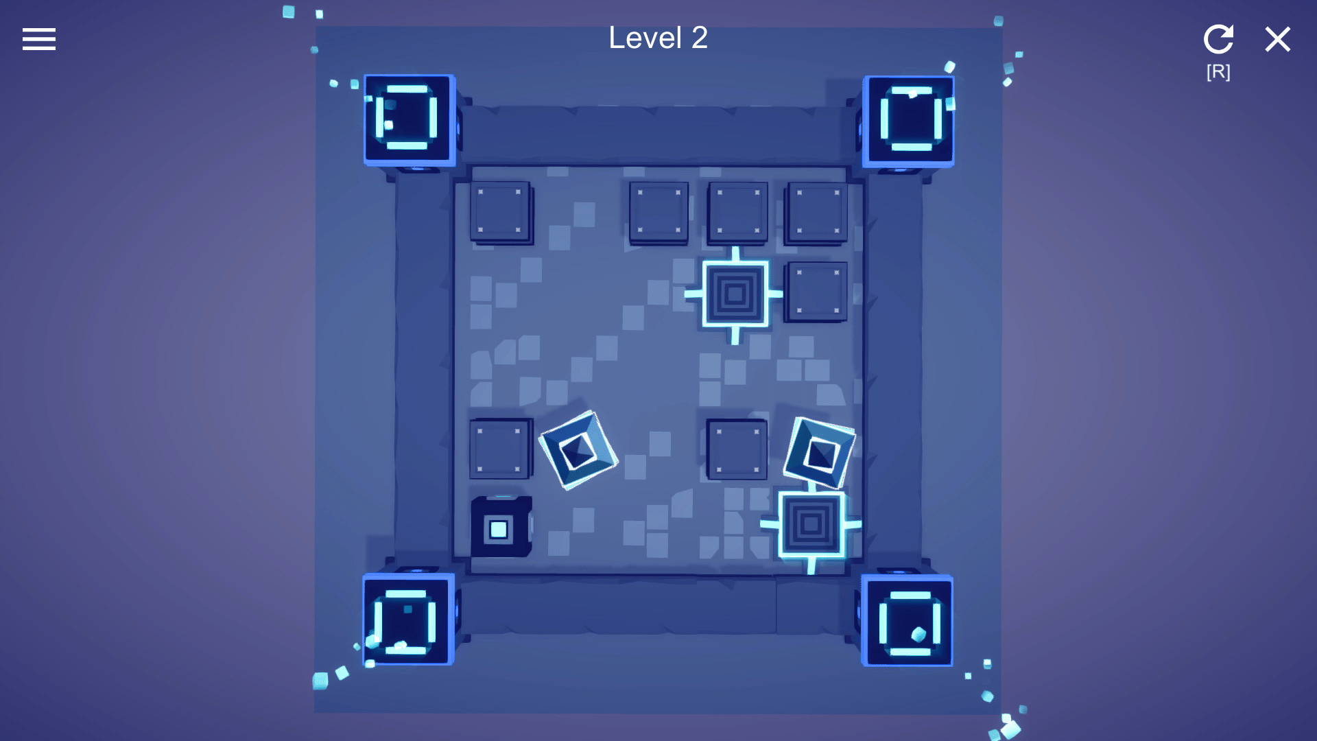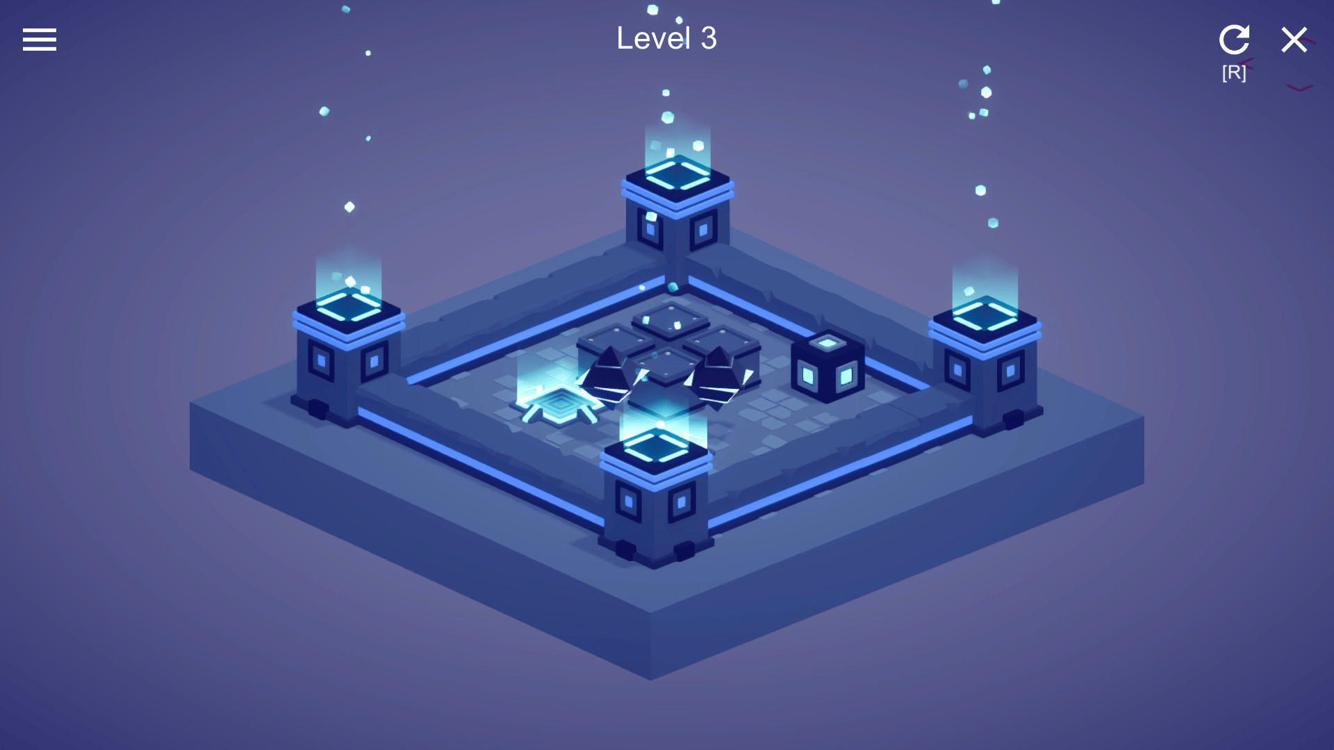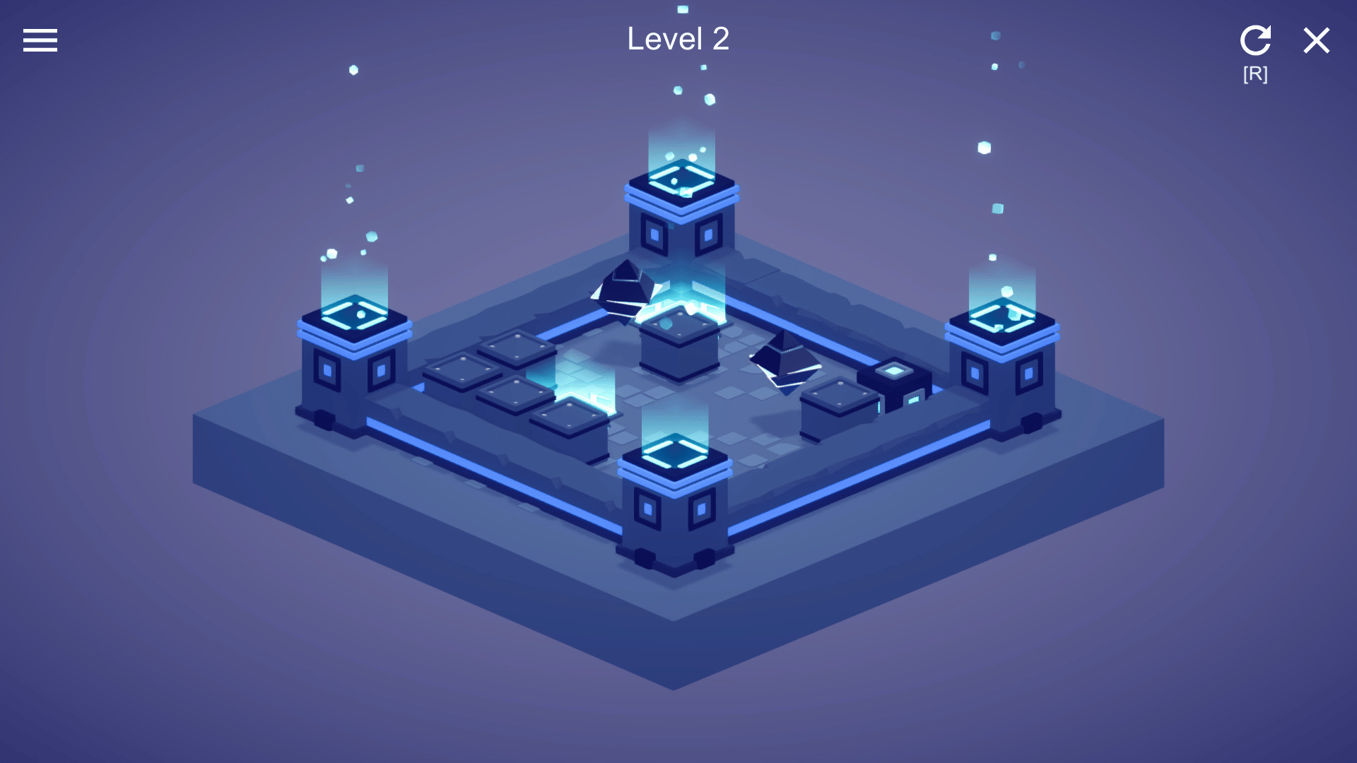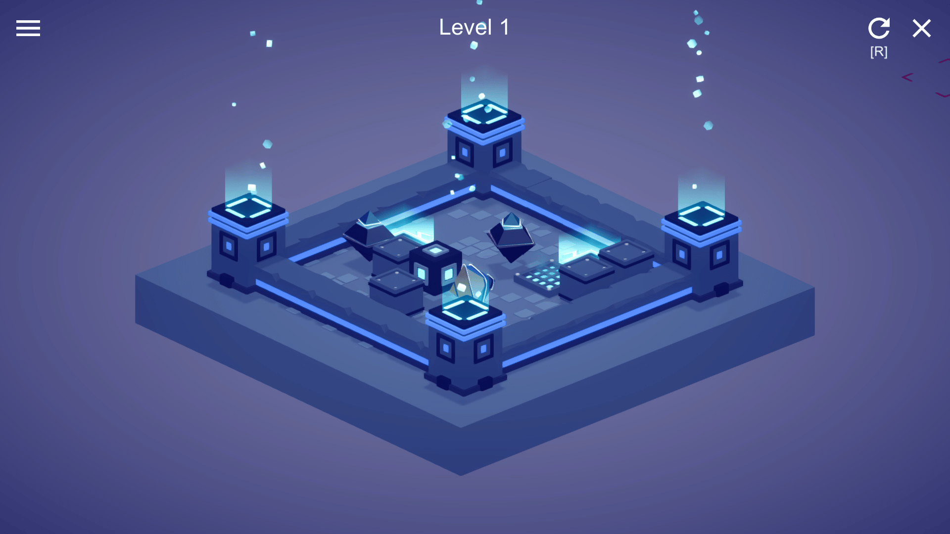 Puzzle game based on sokoban mechanics with futuristic mechanics. Move the futuristic cubes to their respective places, deactivate the leisures and go through the portals to pass the level.