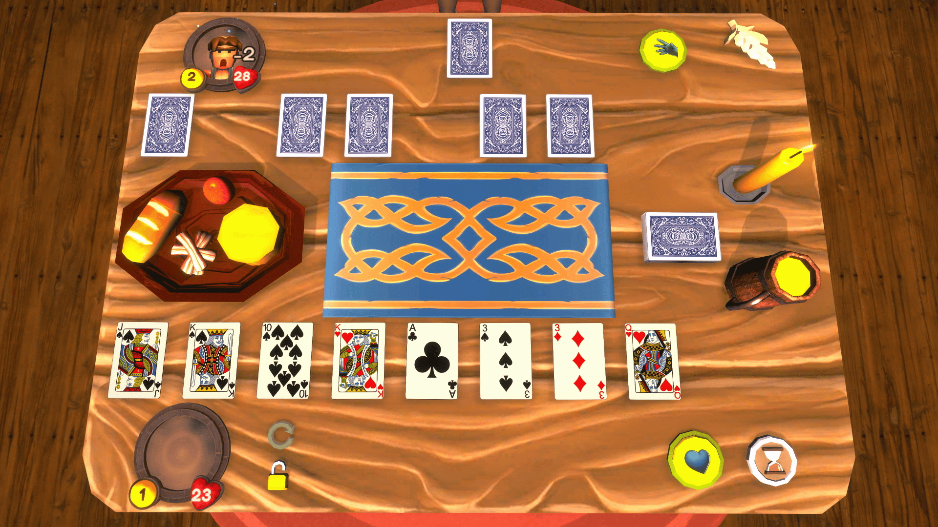 Shufflepoker is a revisited poker game, turned into a duel where you have to play tactics and tricks so that your challenger’s life points reach 0 before yours. Take a seat, sustain yourself and impose your style in this tavern full of opponents who are looking for fame.