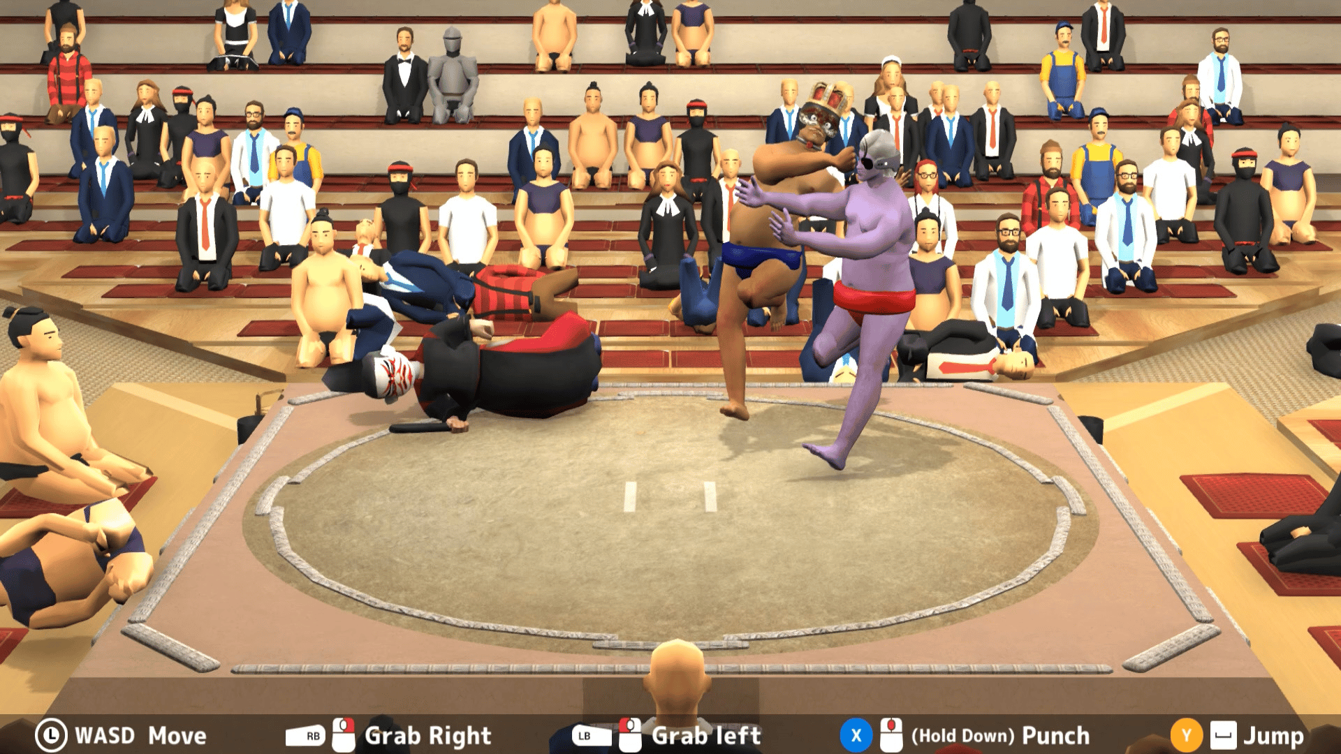 Do you know the traditional Japanese national sport "Morodashi Sumo"? You can use any hand, so let's remove the opponent's "Mawashi". If you make the opponent "Morodashi", you win.