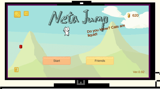 NetaJump is a indie casual game where you grasp the chance to jump higher, unlock skins, or follow the hints in the skin descriptions to unlock them.