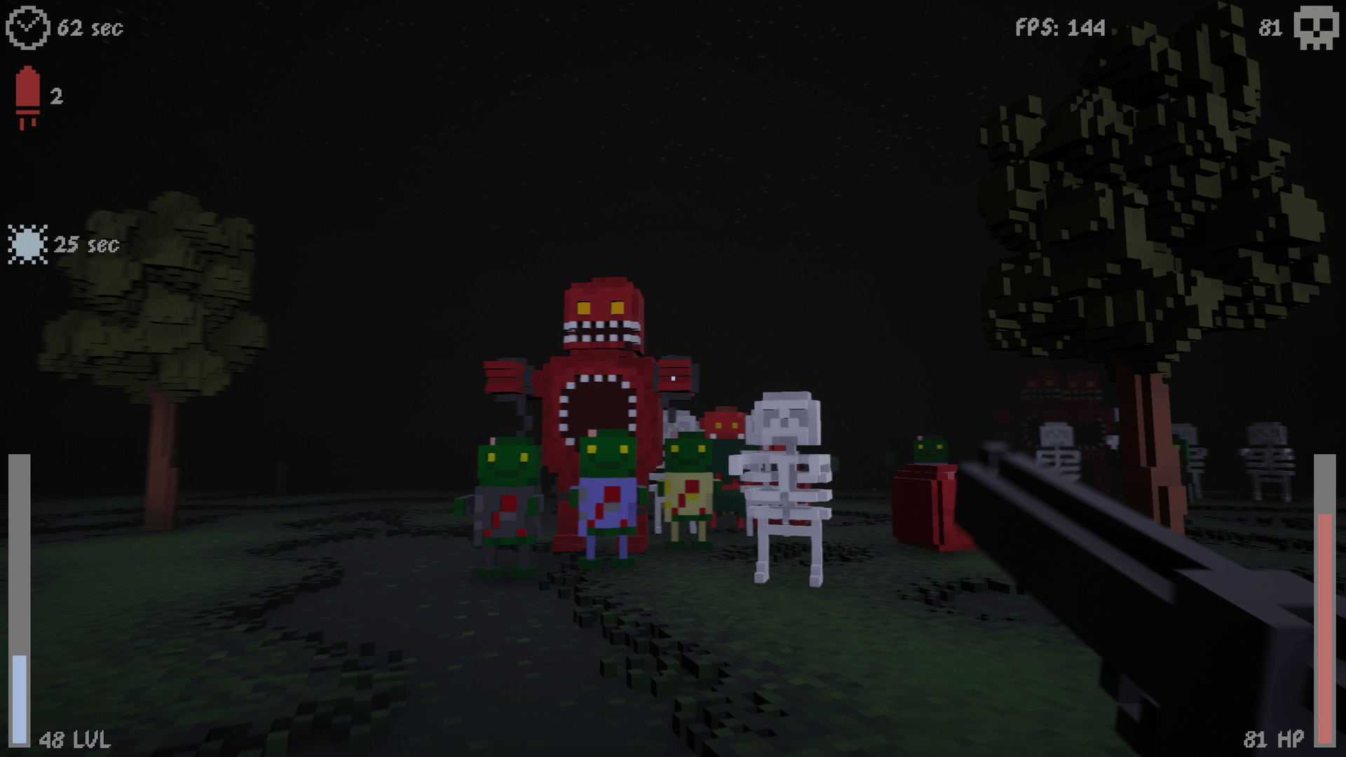 Voxrush is a time survival FPS game with a full destructible voxel environment. Kill monsters, take points, upgrade stats and weapons, use skills and find a better way to survive as long as possible to become the best!