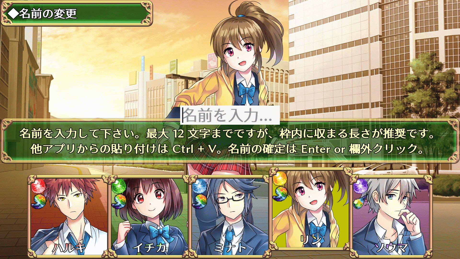 "Students of Psionic Power" is RPG based typing game. You can create your own party members (Can input name, can choose portrait for all of 5 members in ally party). 20 portraits (10 school boys and 10 school girls) are included for character creation.