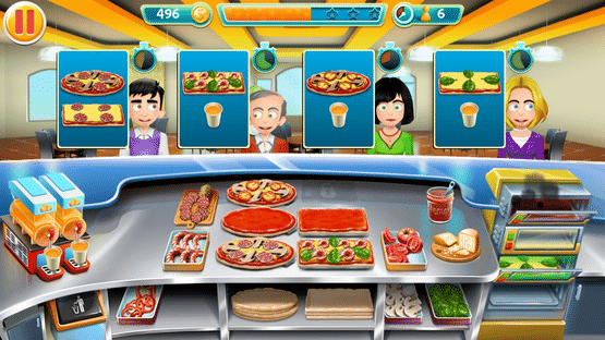 Look out, this pizzeria will soon become the best one in town! Well... at least that's your plan. The clients are already standing in line, and you have to serve them as soon as you can. It's harder than it sounds though! Everyone's in a hurry, and you have to prepare each order exactly - otherwise people will get angry! Give it your best and you will make it!