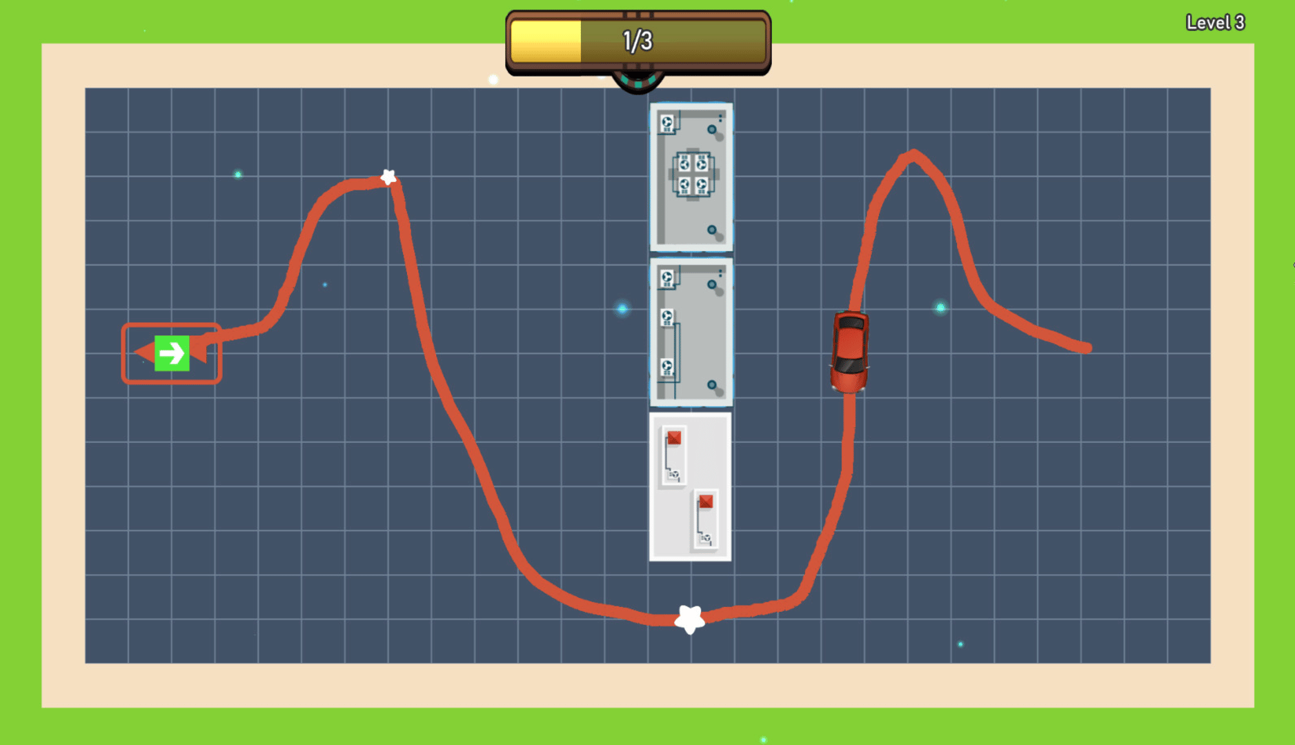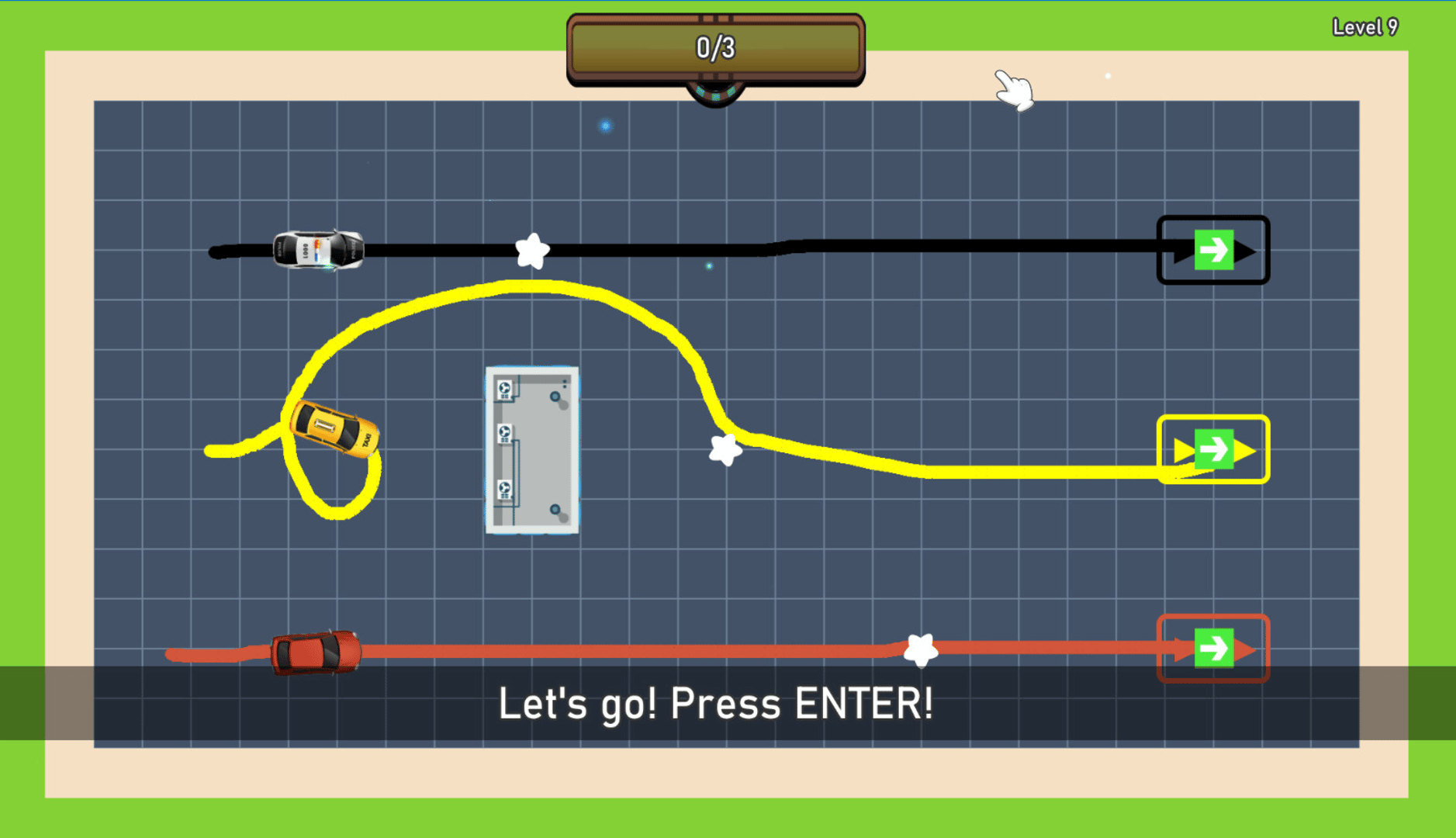 Fun combination of parking and puzzle game in which you draw the path of cars to their parking spot.
