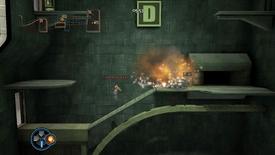 Crash commando is a fast-paced PlayStation 3-exclusive side-scrolling shooter. Obviously inspired by Worms and Soldat, the large levels and small characters allow for hectic action in both single and online multiplayer modes.
