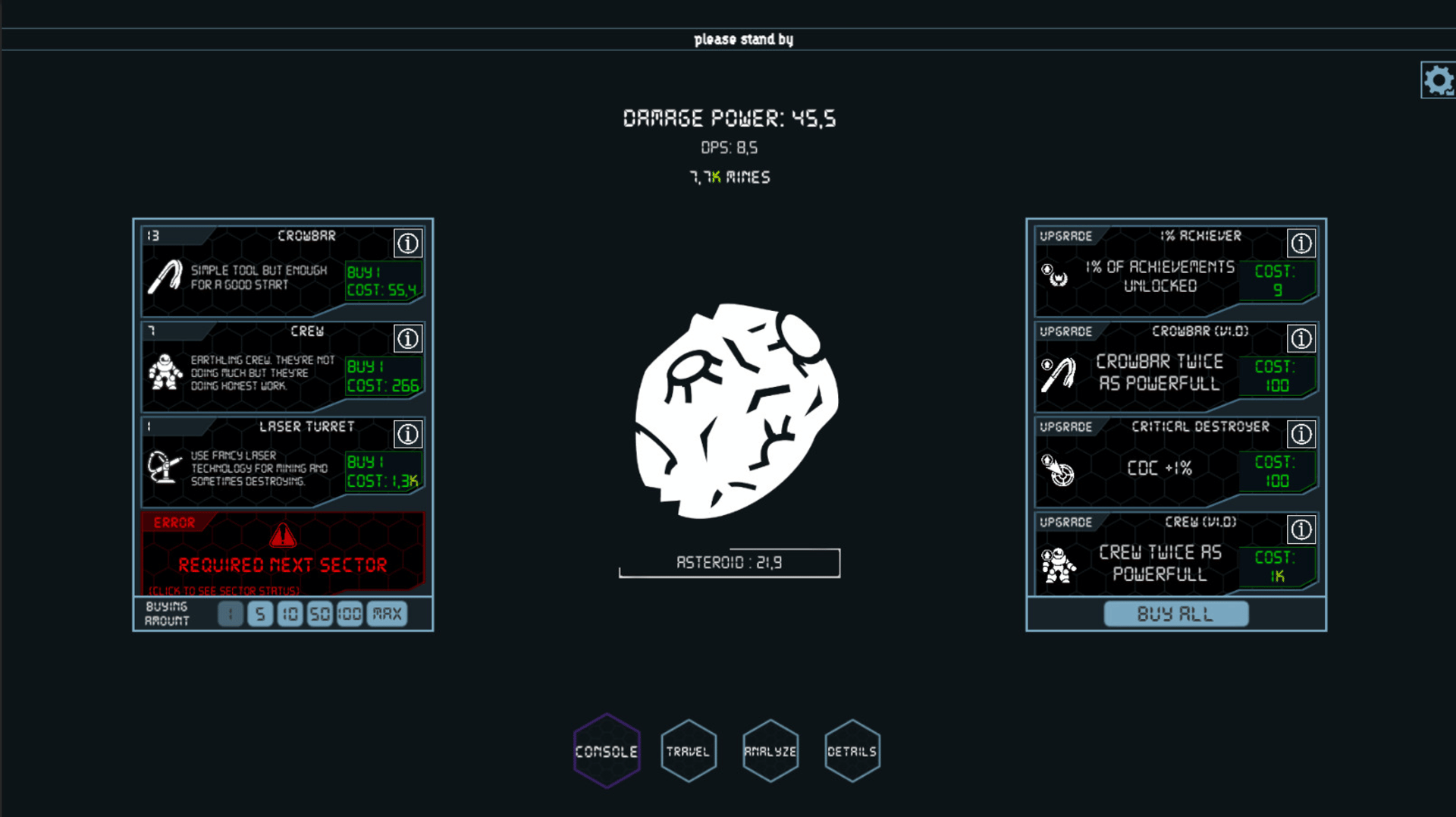 An asteroid mining based idle game. Travel in space and discover.