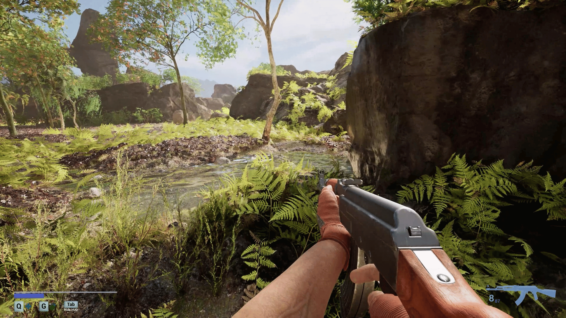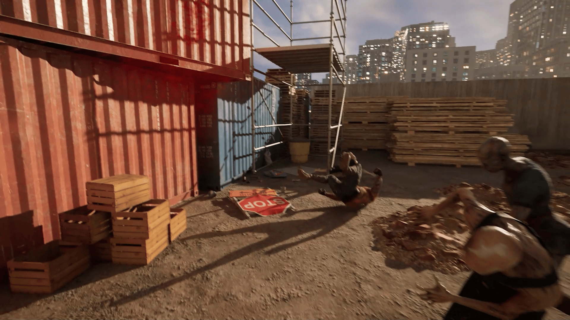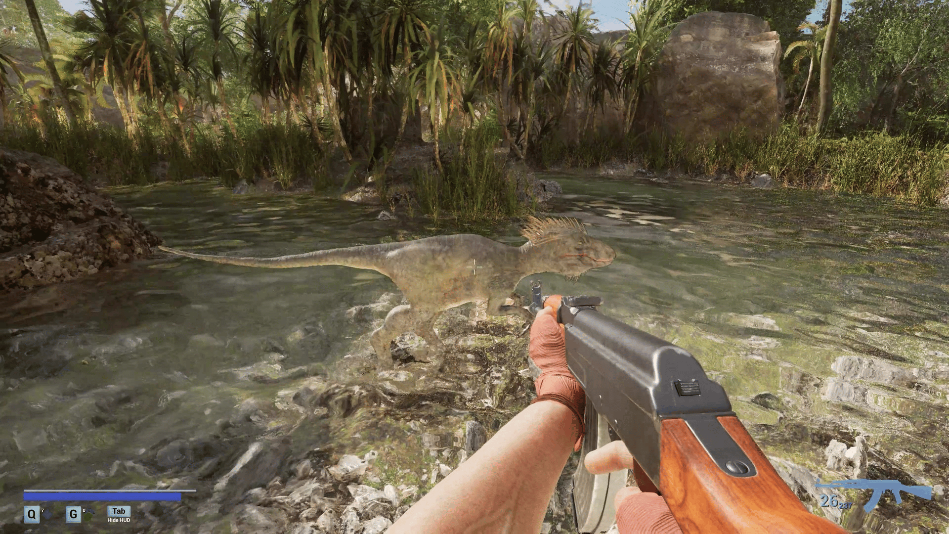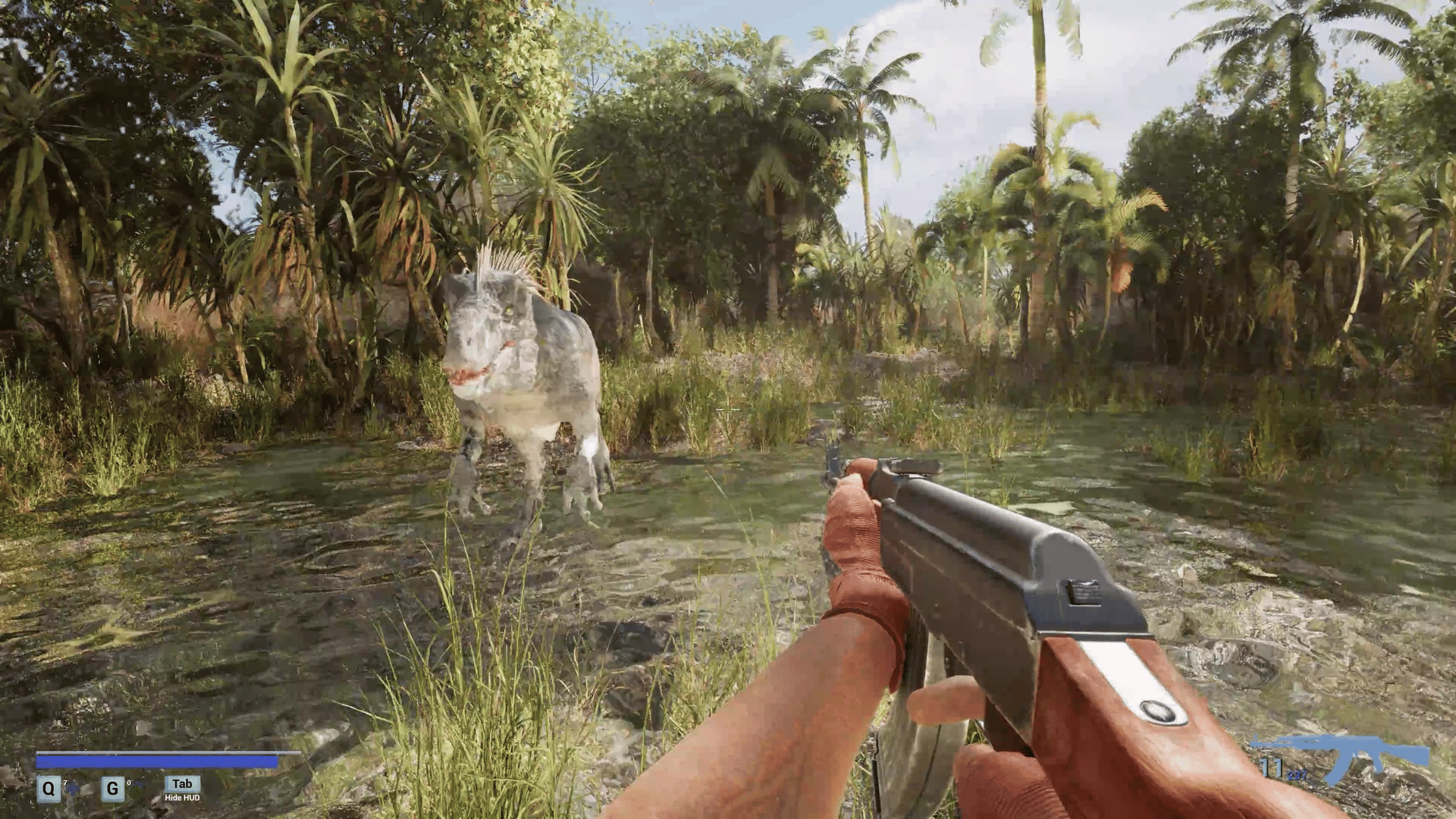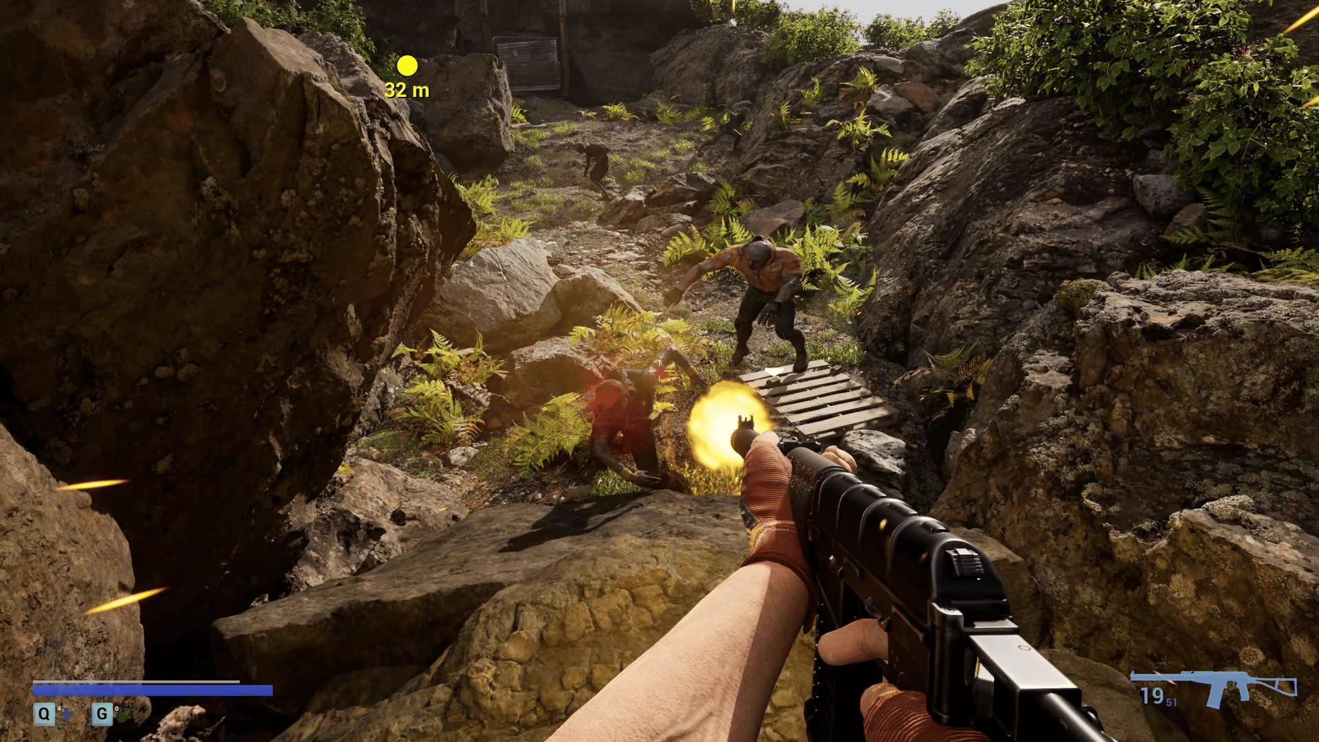 A first-person survival horror set in a post-apocalyptic linear world with ultra-realistic, 3D-scanned environments varying from cities, indoors, forests, caves where you encounter zombies, dinosaurs, giant mushrooms and massive creatures mutated by toxins released from a meteor crash.