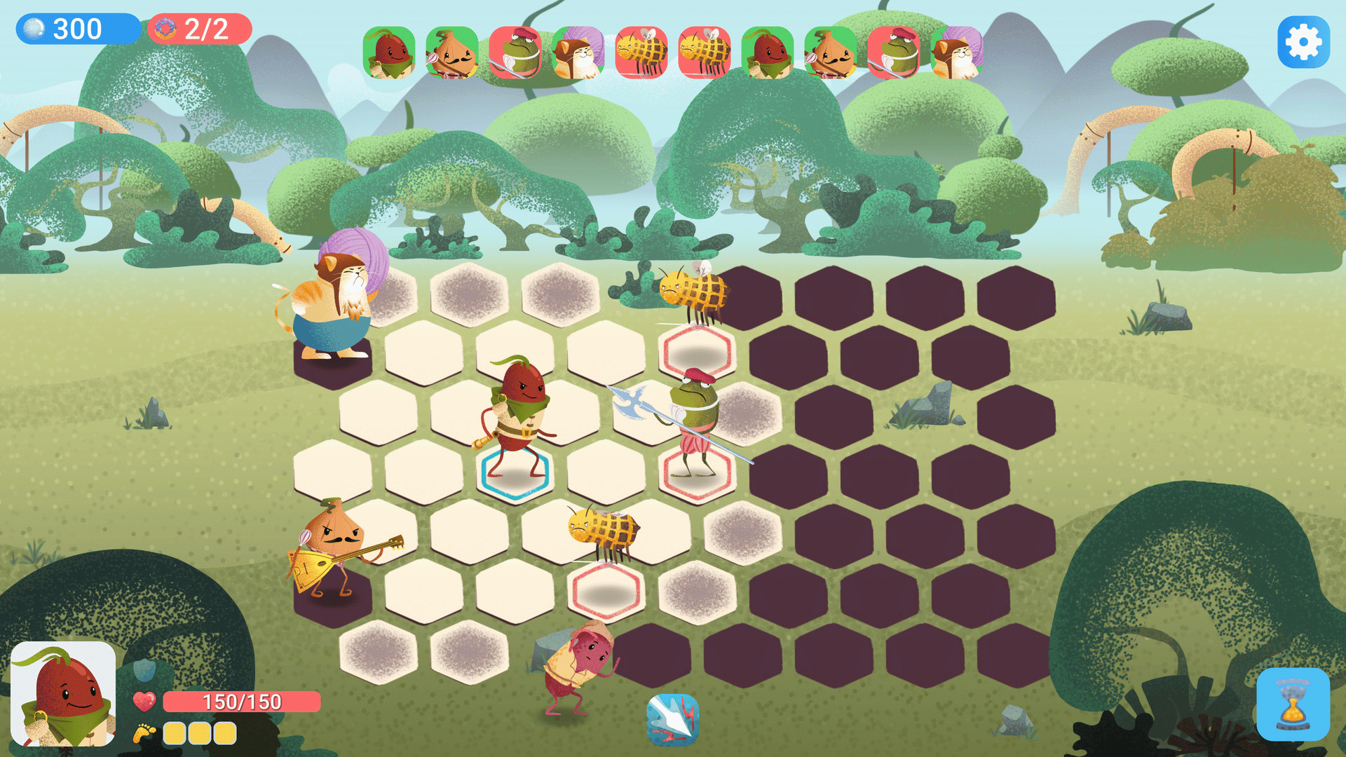 Fight tactical turn-based battles in the cartoonish world full of whimsical creatures. Wisely positioning your heroes on a hex grid and combining their unique abilities is the key to victory and obtaining the precious bubbles.
