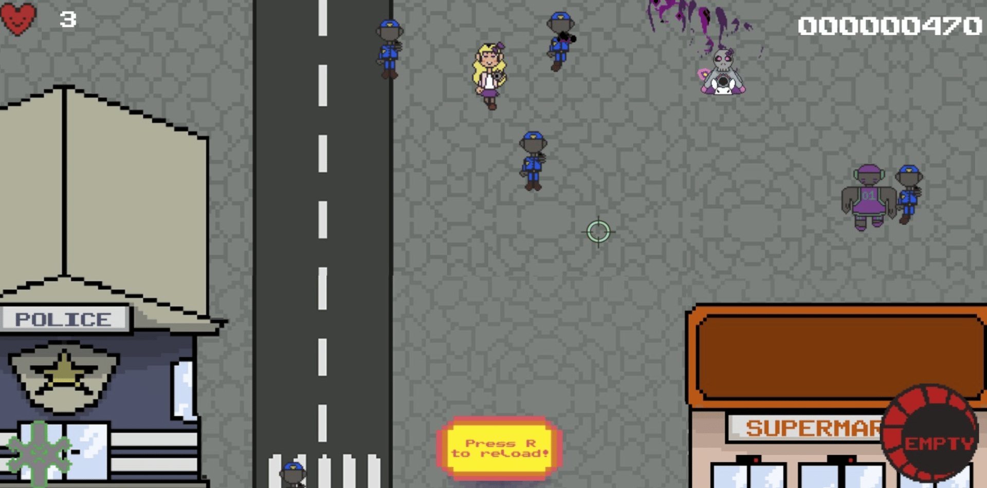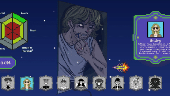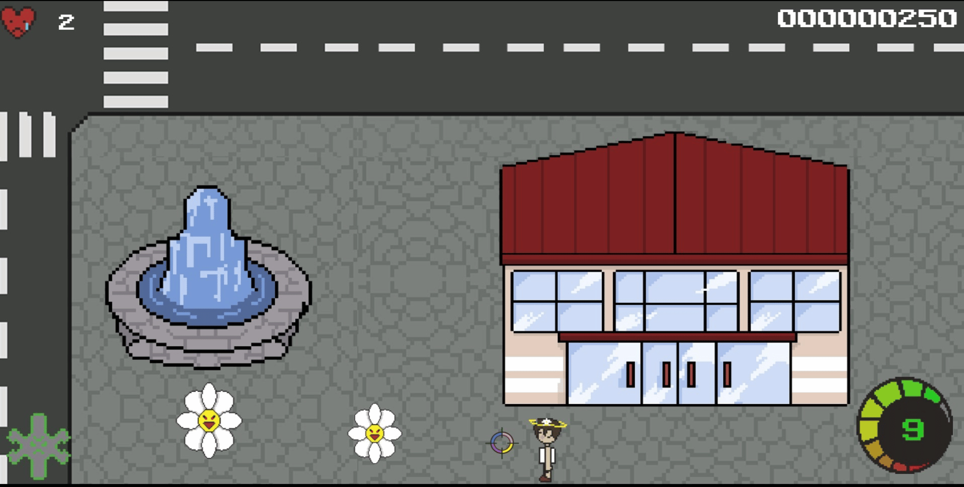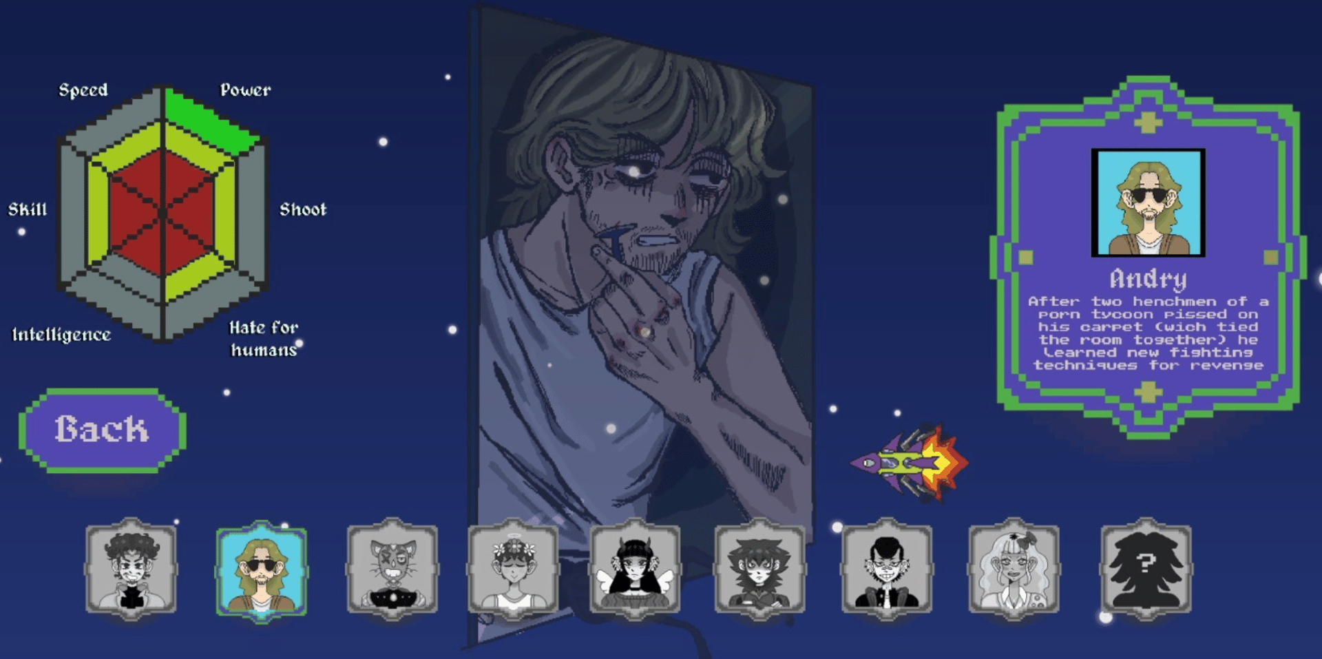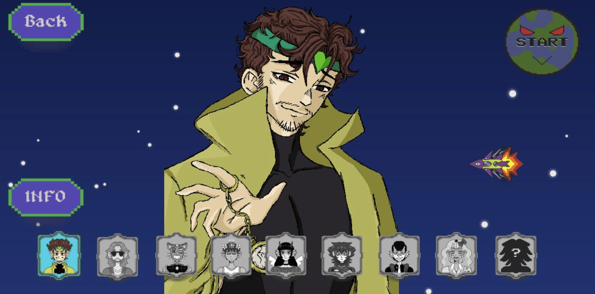 A gang of nine aliens from another galaxy that were put to community service, want to clean the universe from what they think is the worst garbage: humans! Help them in this arcade game!