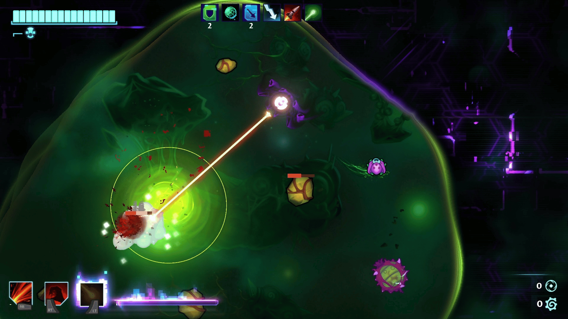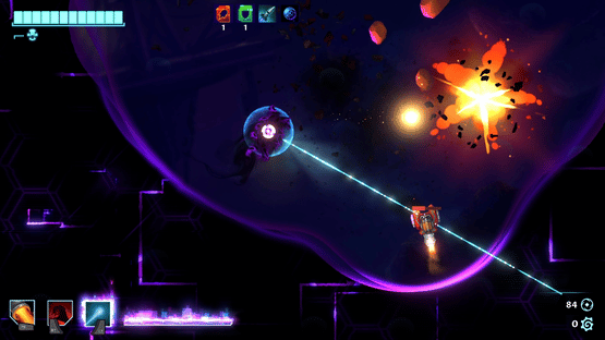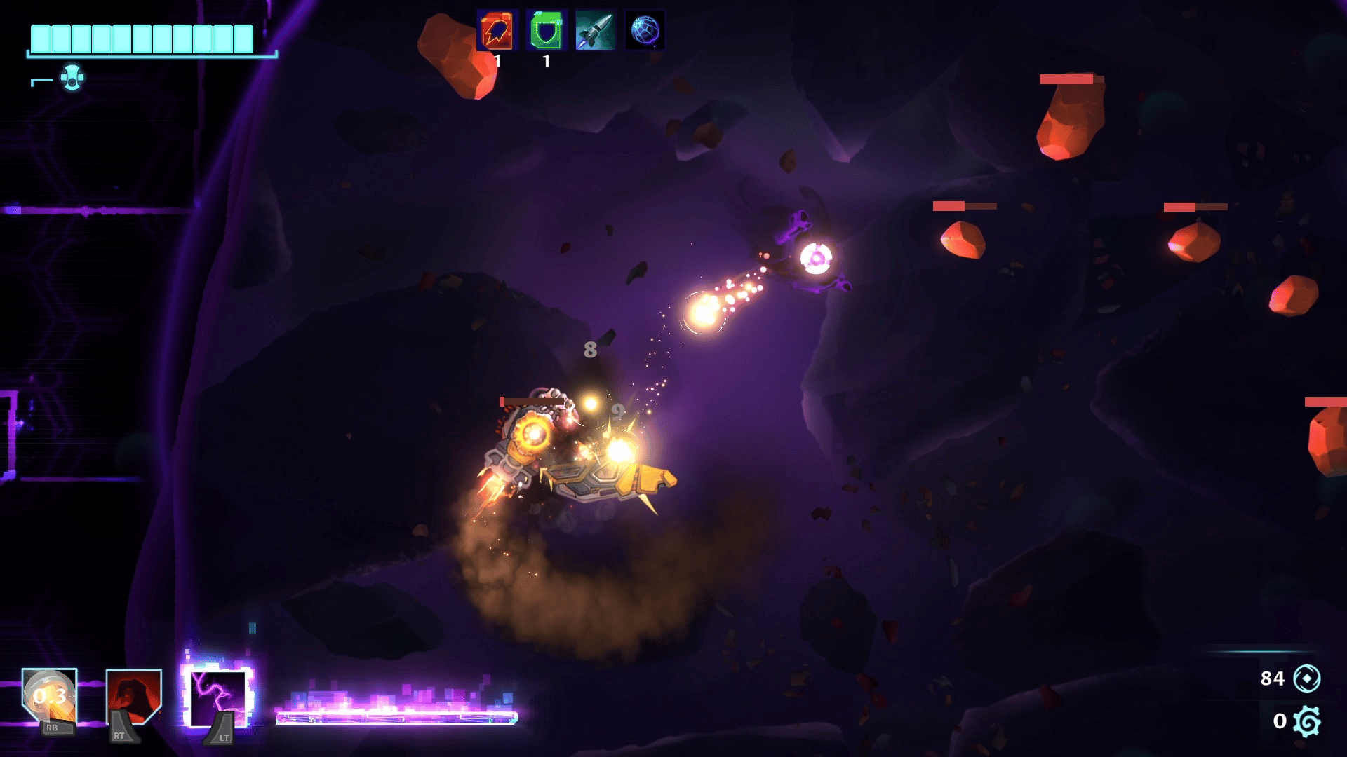 Galactic Glitch is a space-roguelike with fast and physical combat. You fight in bubbles of glitched spacetime, hurling rocks, bouncing foes off walls and destroying your multi-part enemies piece-by-piece in tough-but-fair, souls-inspired combat. Explore, destroy, die, repeat. The Prologue features two full levels, each with with their own unique enemies and environments, multiple Challenge modes, where players face enemies in arena style combat, as well as three NG+ modes, that each offer new enemies and increased variety of combat encounters.
