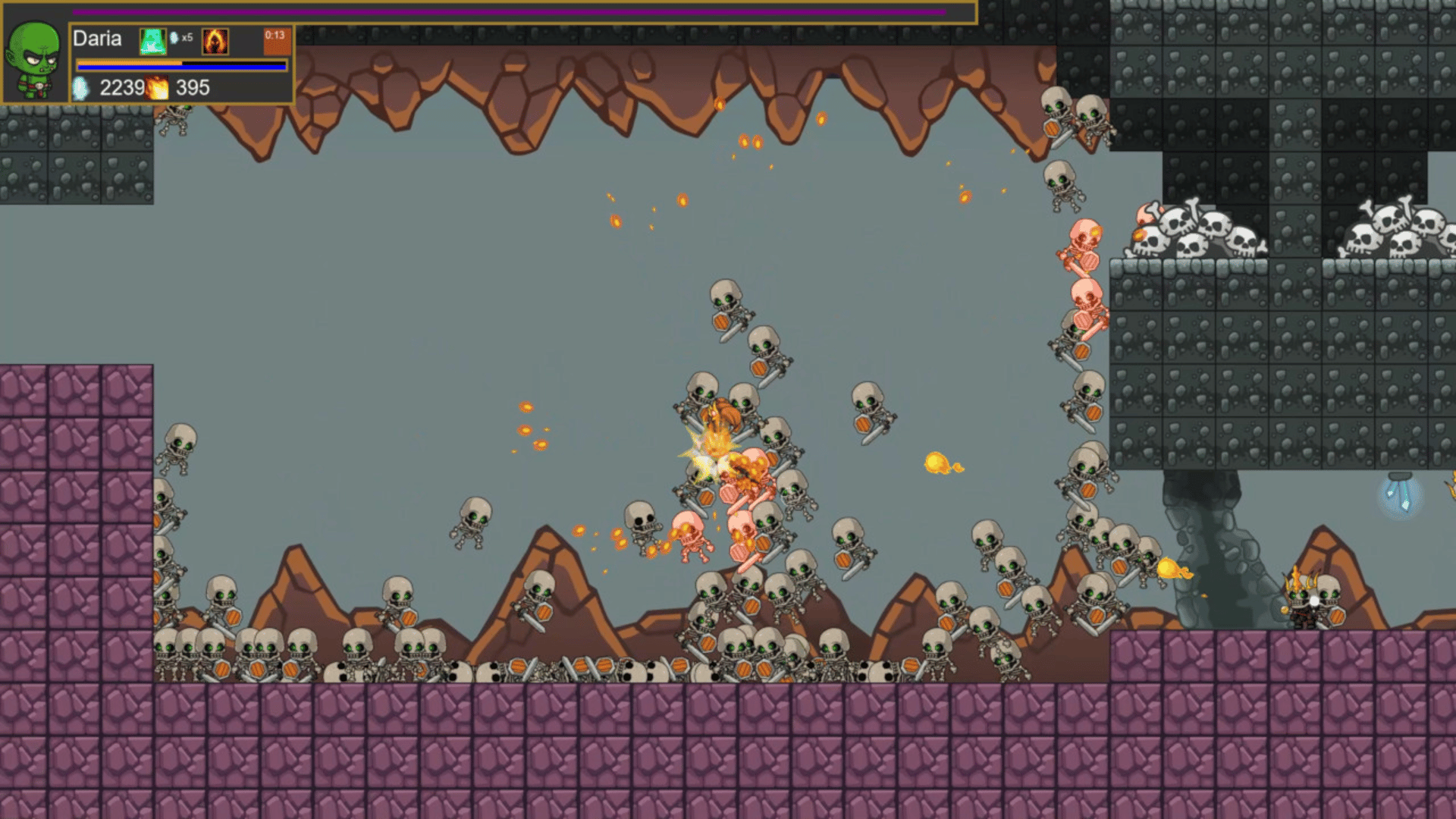 A dynamic action game with a side view, where you have to fight with huge crowds of enemies, accumulate magical power to defeat a very strong boss. Control multiple characters with different skills, not just attacking. You can switch between them or play with friends.