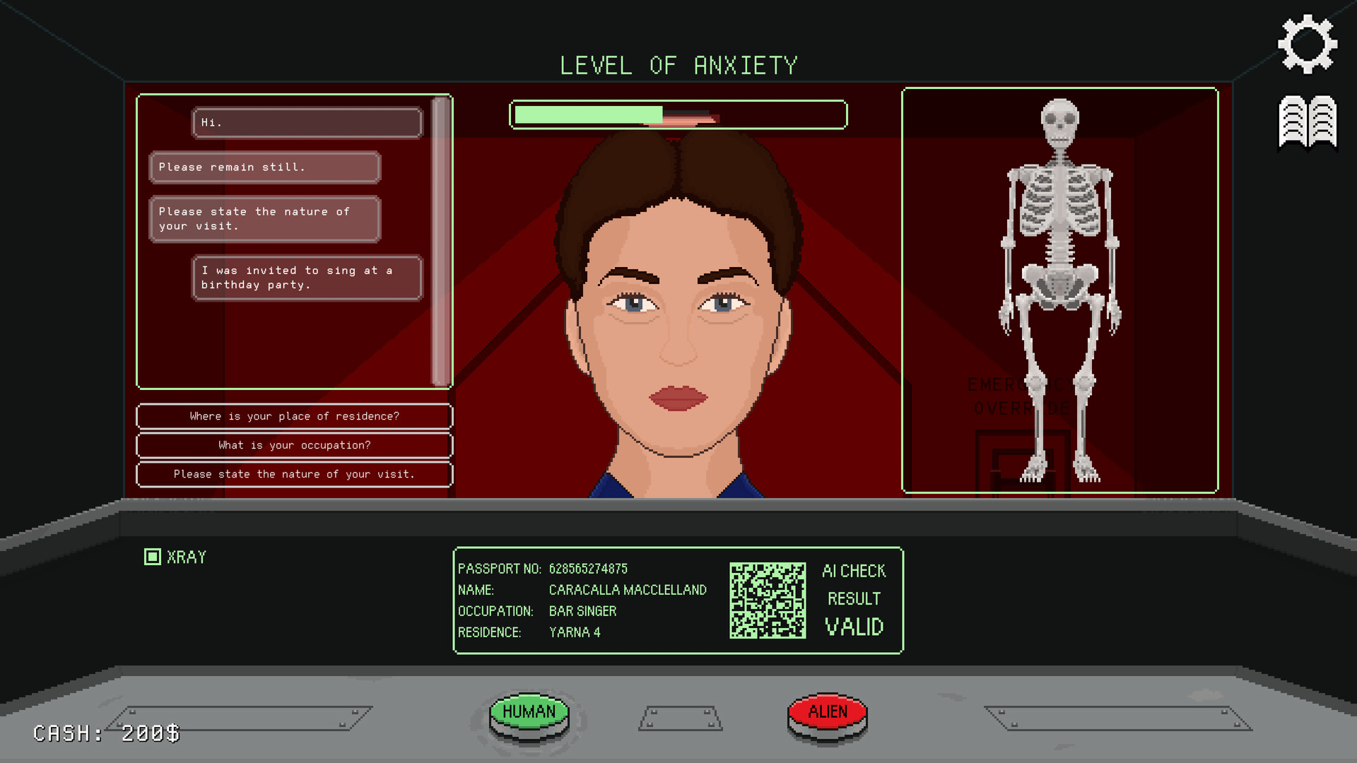 Aliens are entering Earth disguised as humans. It's your job to expose these imposters. Can you tell who is human and who is not? Choose your own path while you keep the Earth safe.