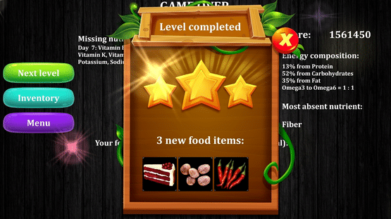 Food puzzle game. Complete lines of food blocks and collect 175+ food items in 30 levels with the help of a raccoon.