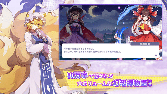 Touhou Arcadia Record is a game application for smartphones released by Damo Games on July 28, 2022. It is an authorized derivative work of Touhou Project.