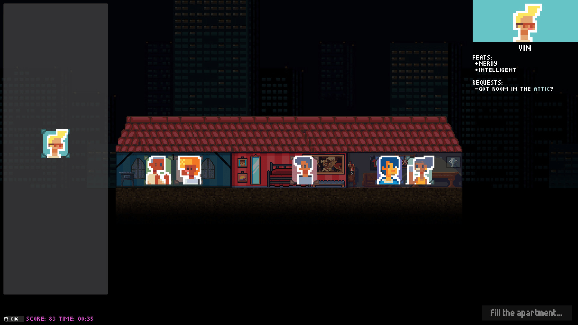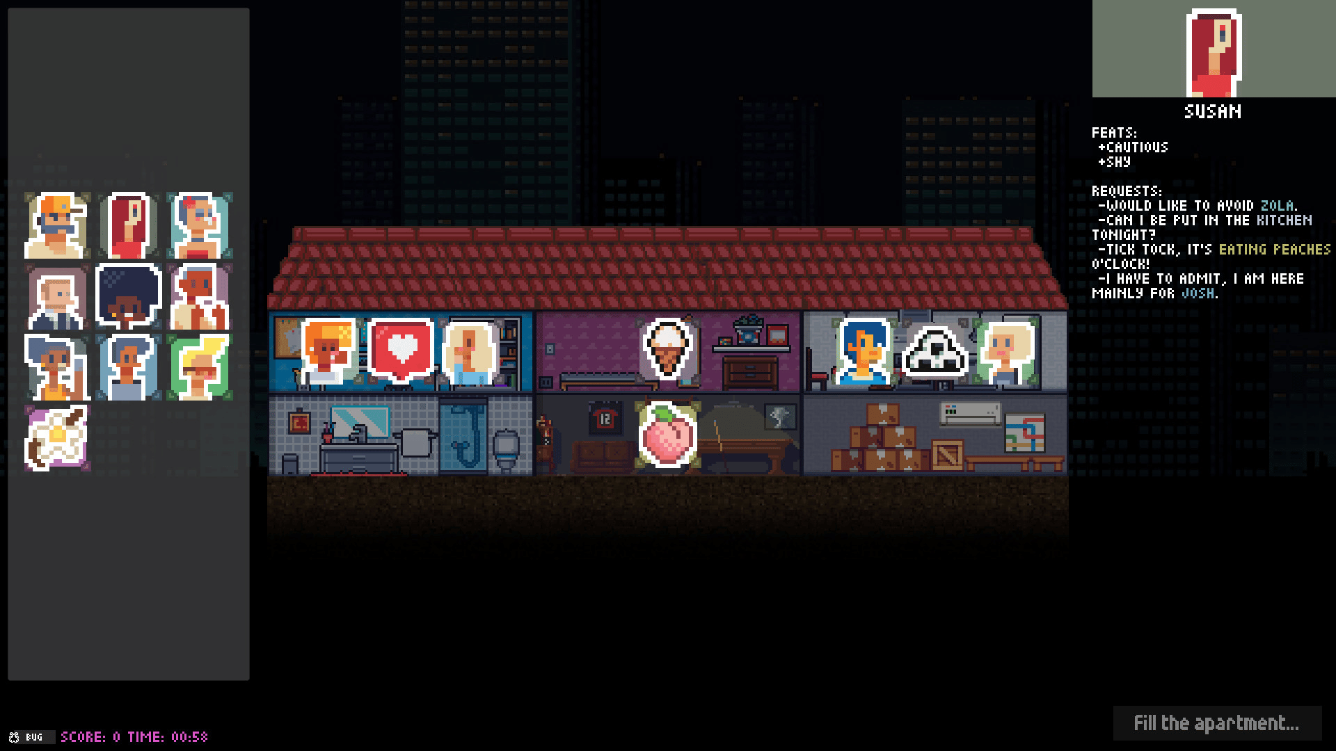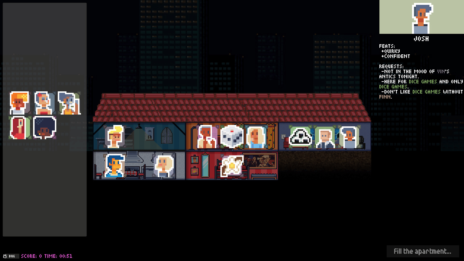 Welcome to Orgynizer - A sex-positive non-pornographic puzzle games about throwing the best and most satisfying swinger parties. Open your doors to a cast of procedurally generated guests, all with unique quirks, desires and tastes. Place them together in pairs (or groups) and maybe nudge in some interesting activities.