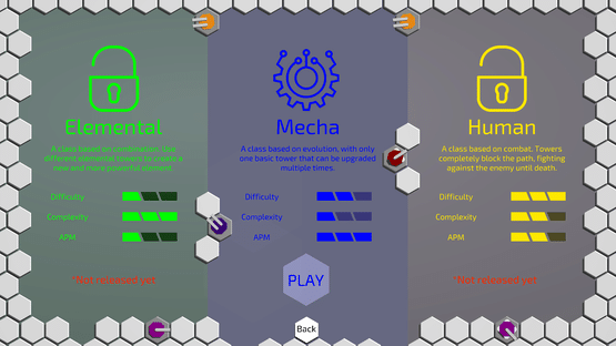 HexTD is a tower defense game where players can choose from 3 classes to defend their base. Deploy your machines, soldiers or elementals to create the enemies path and guard against powerful bosses, playing solo or with a friend to create a new experience in tower defense genre.