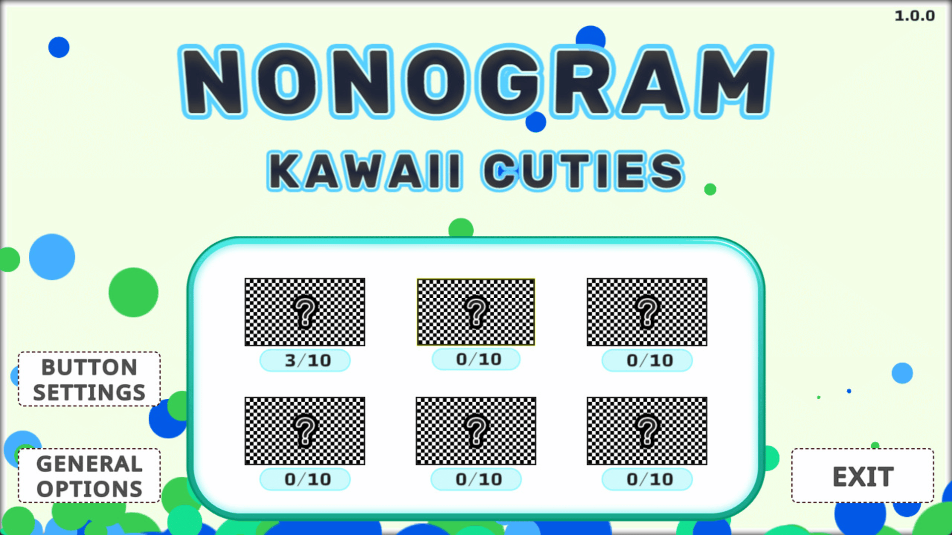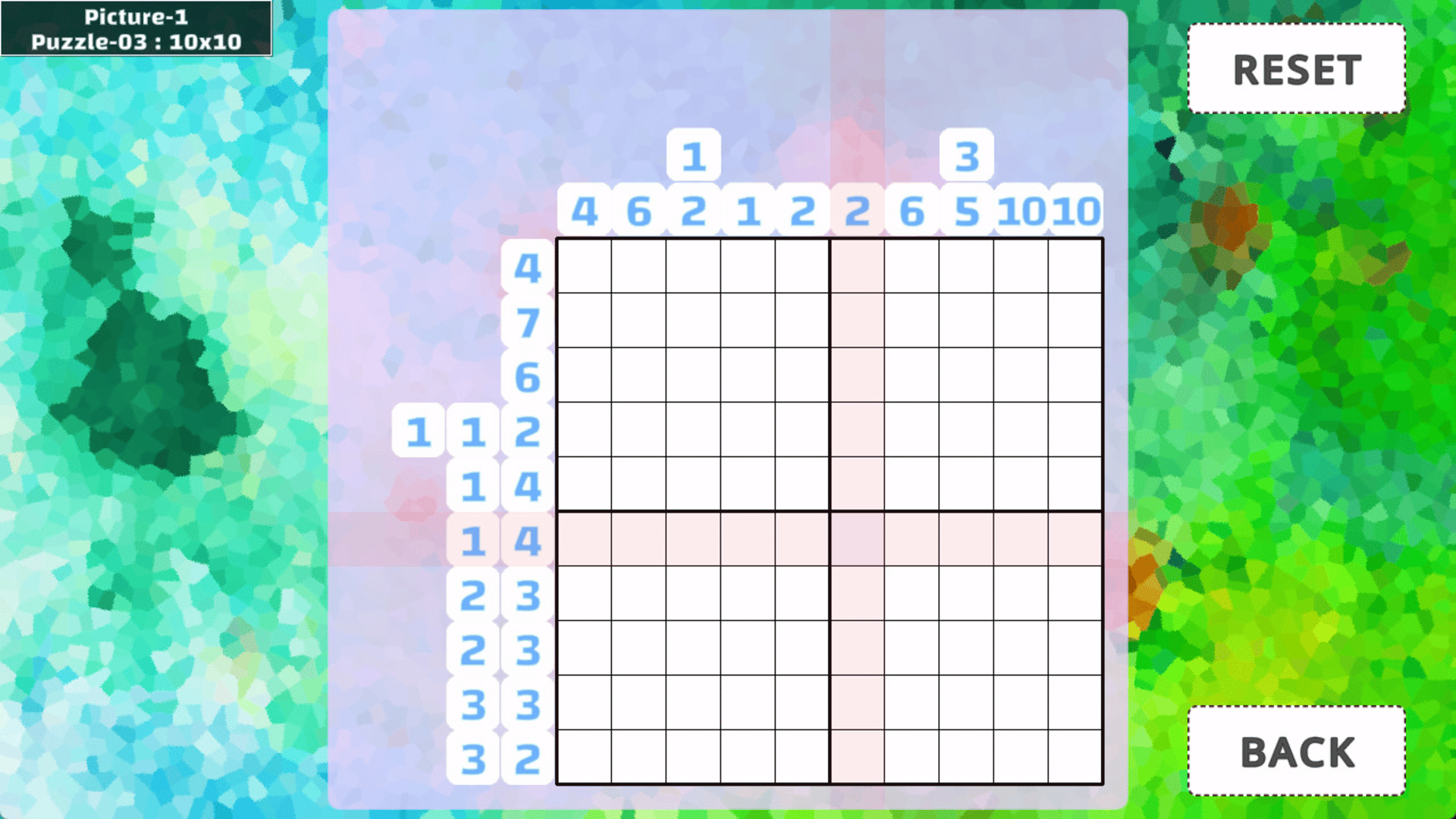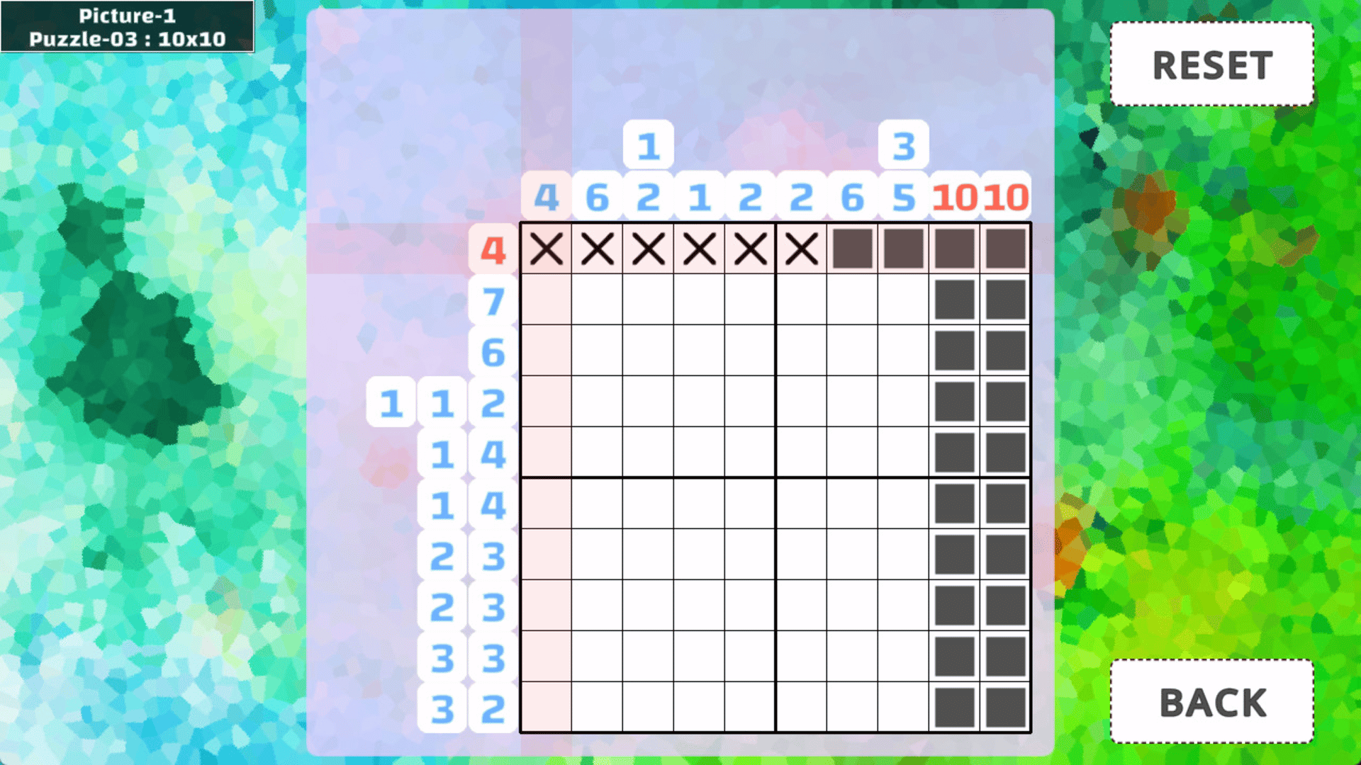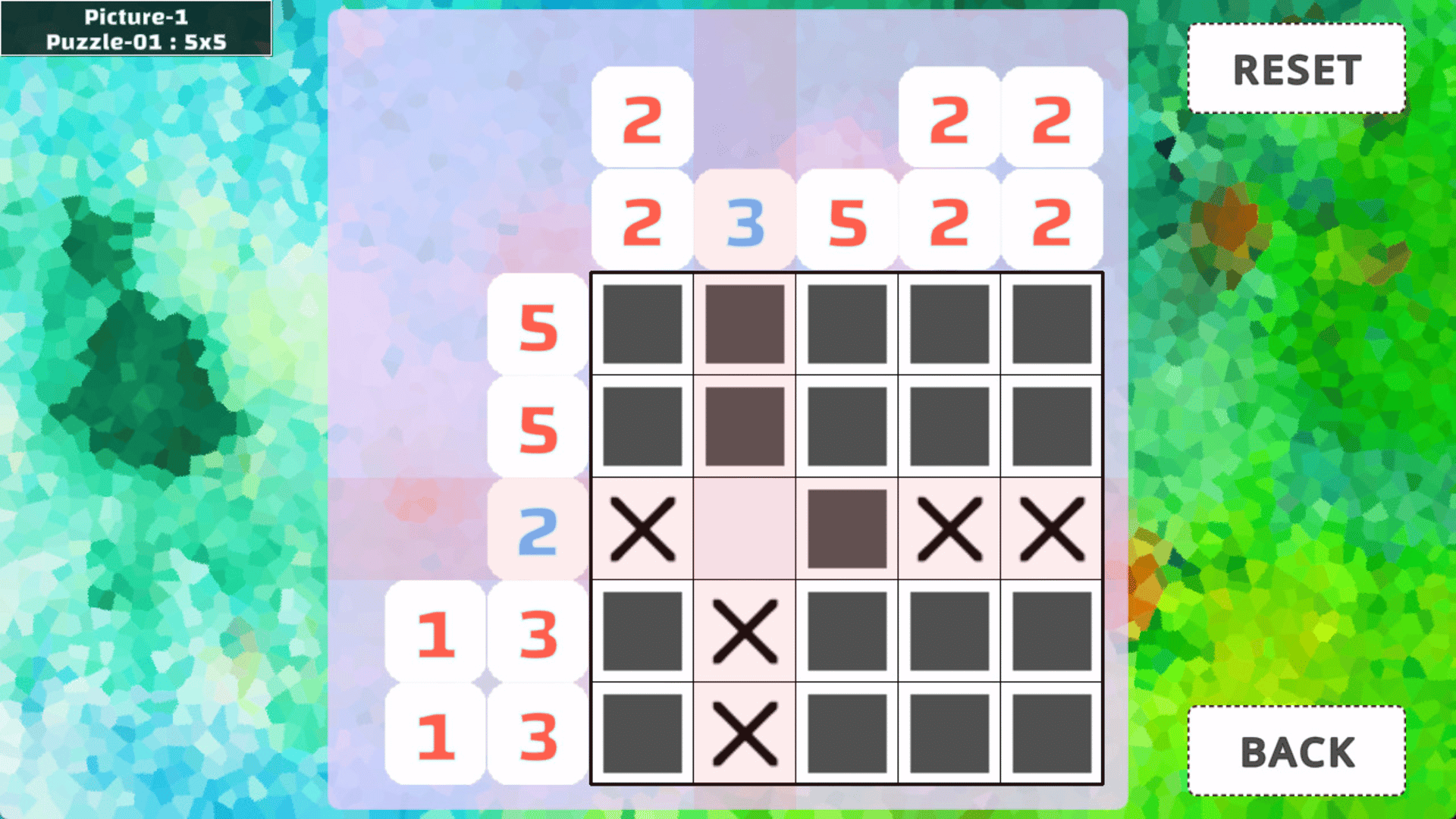 This game, called "Nonogram", is a logic puzzle that correctly fills the squares from the given hints. Solve the puzzles and complete the "cute" picture!