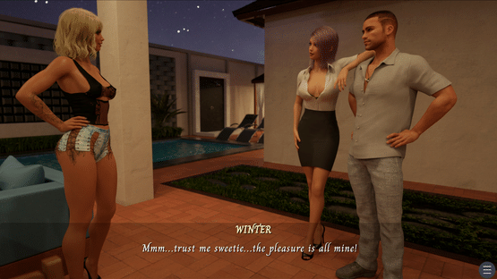 An explicit erotic visual novel following the story of a young couple experiencing their first sex party together at a very exclusive pool.