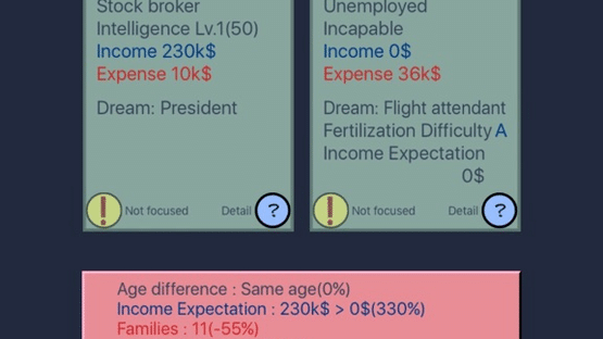 Build a dictatorship by having your family members vote for you! Survive until the age of 60 amidst violent wives! Marry and breed with aliens in a distant planet to return to Earth! Raise your child to become a superstar! Raise your children as star athletes to win over the world! Various scenarios are ready for you to play where you can do different things with your children.