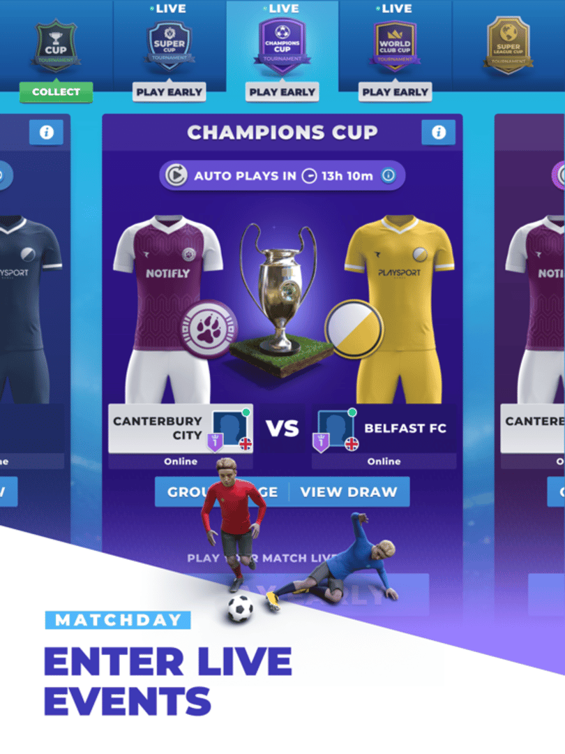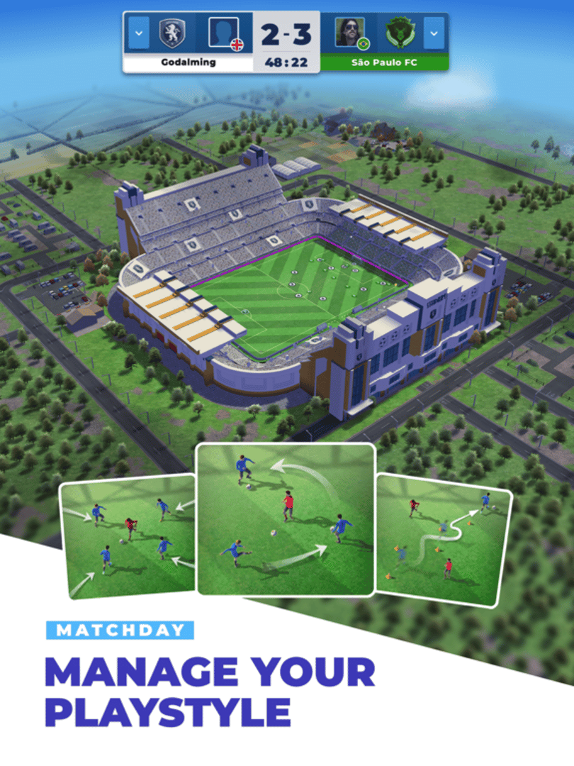 Become a football manager. Assemble a squad of football superstars and climb to the top of the soccer manager world. This is a new and fresh football manager game. This is a football management game unlike any other. Take charge of your own club built around you. Play matches when YOU want. Test your football manager credentials against players from around the world in exclusive live competitions.