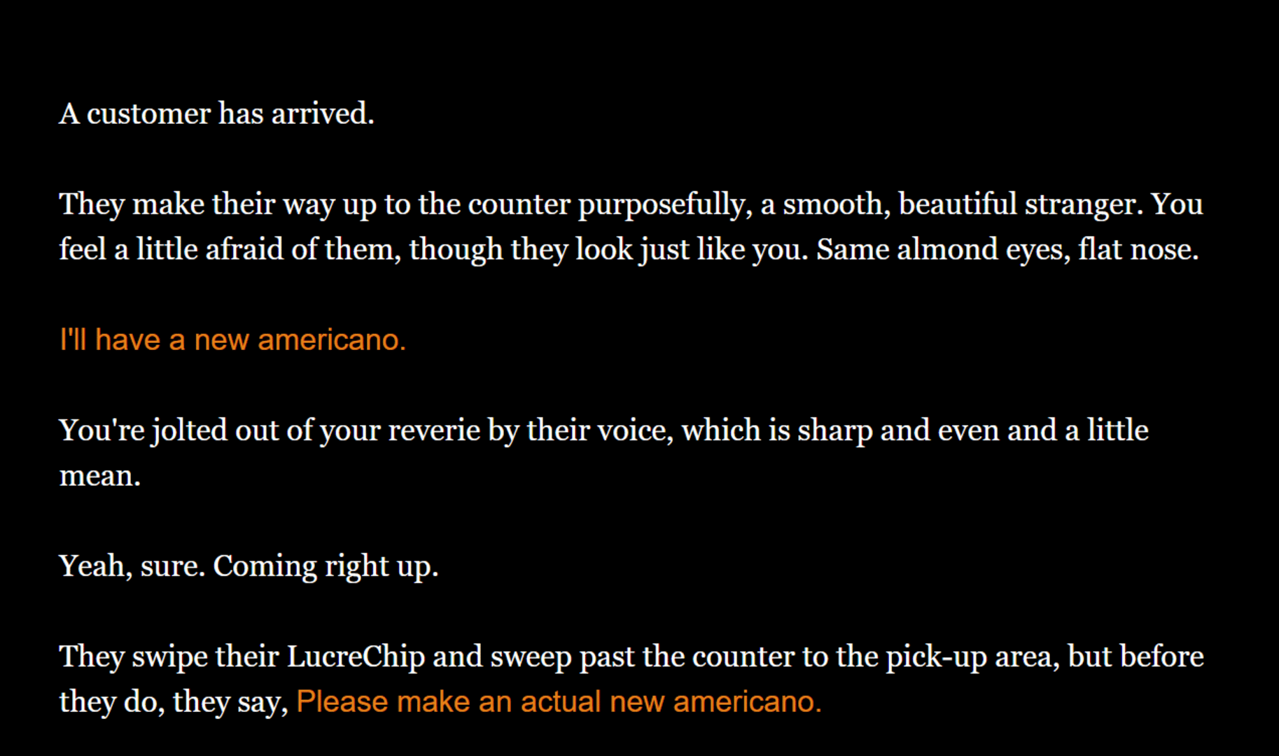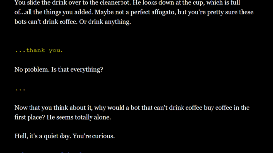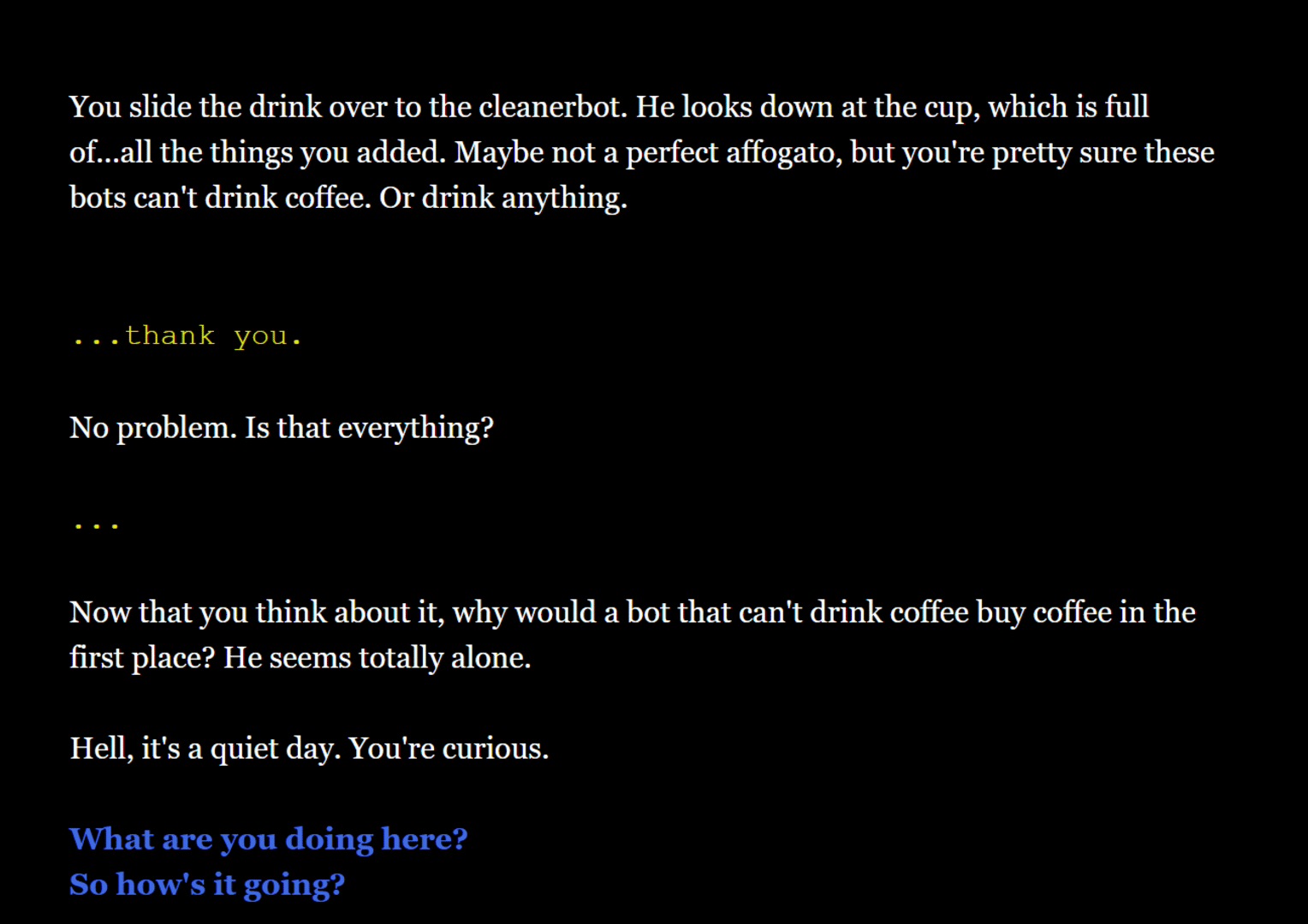For all your coffee shop needs: a little story about making terrible coffee and having awkward conversations with strangers.