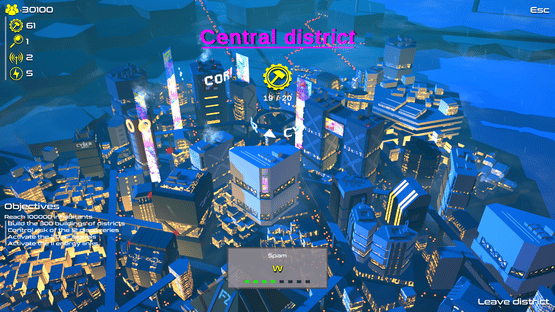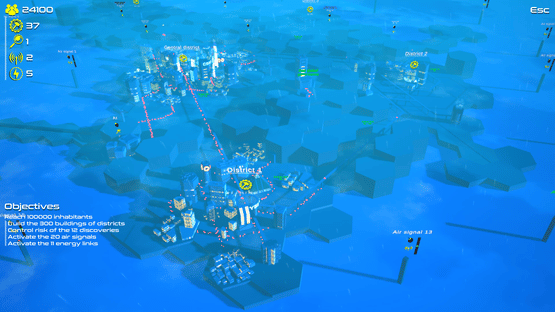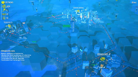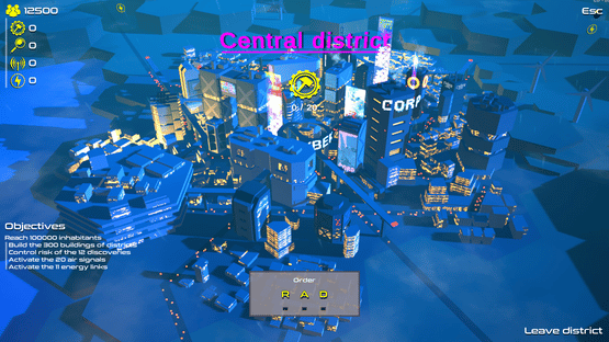 Build a big Cyber / SCI-FI city broken down into multiple districts to grow the population through simple actions.