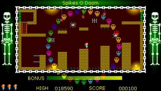 All Hallows Evie is a Halloween themed single screen style platform game moulded on the 8 bit classics of the ZX Spectrum.