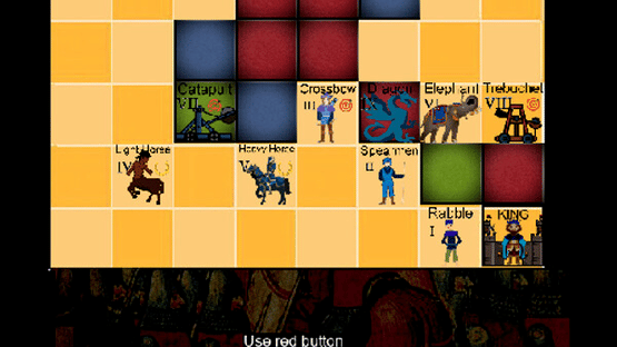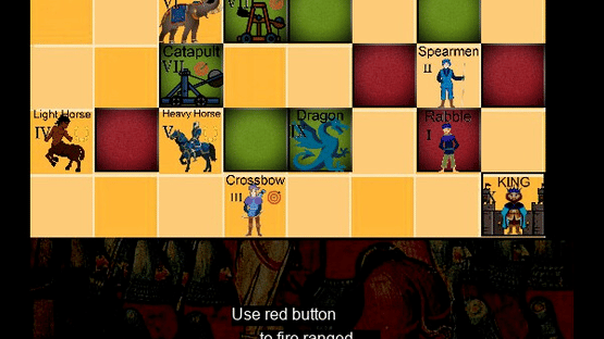 A 2 player turn-based strategy game with hack n slash element in a fantasy setting. Players secretly set up their pieces and terrain tiles on their half of the 8x8 battleboard and once both players are ready play commences. Pieces move and attack in a fashion similar to Chess, white moves first then black while other pieces impede your movement. Pieces capture other pieces by moving to occupy the enemy square and removing the enemy piece. Capturing is always the end of your turn. Whoever captures the opposing King first wins however there is no check as in Chess.