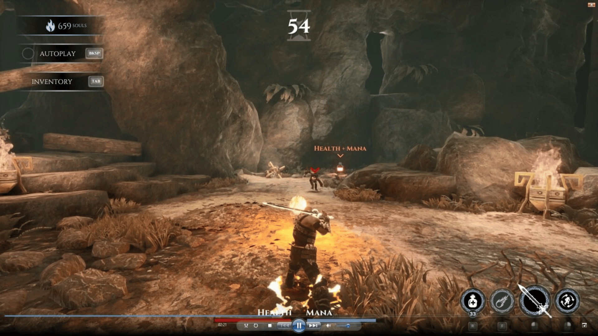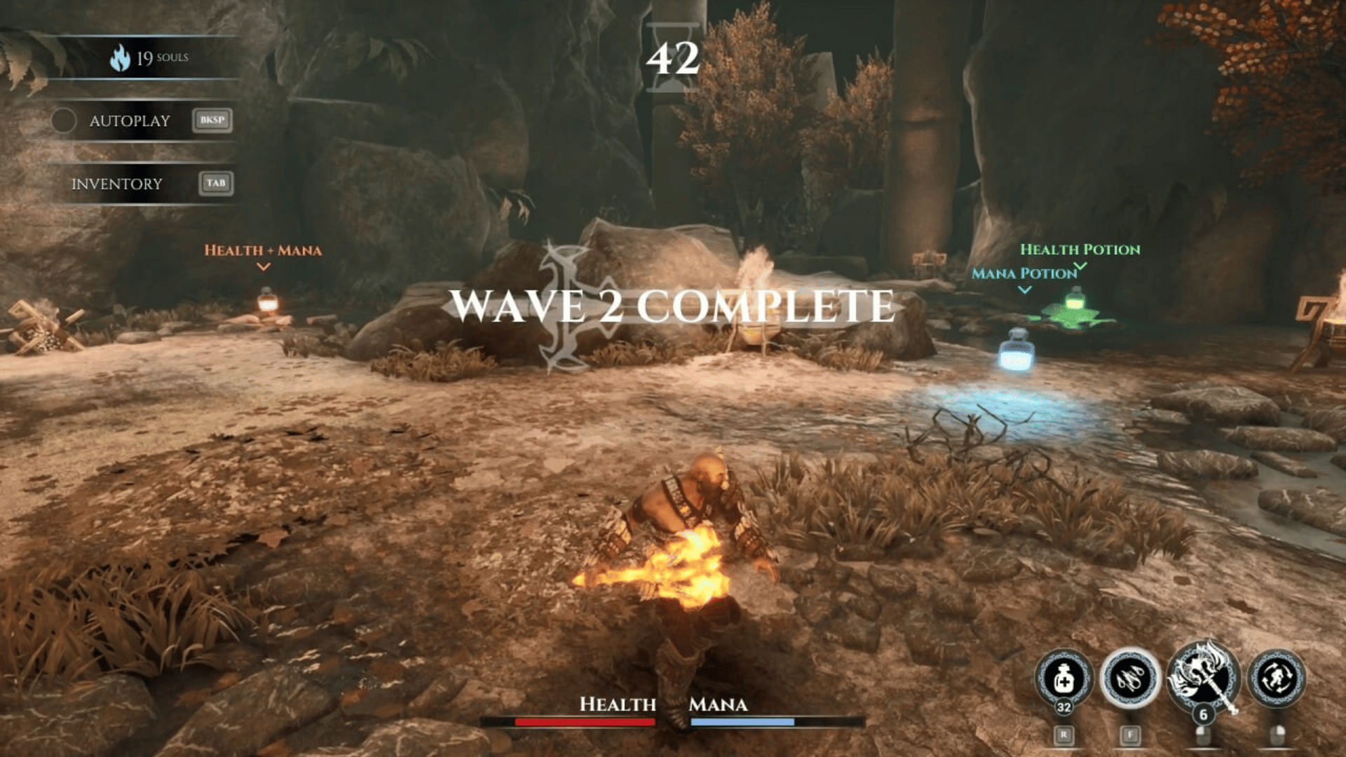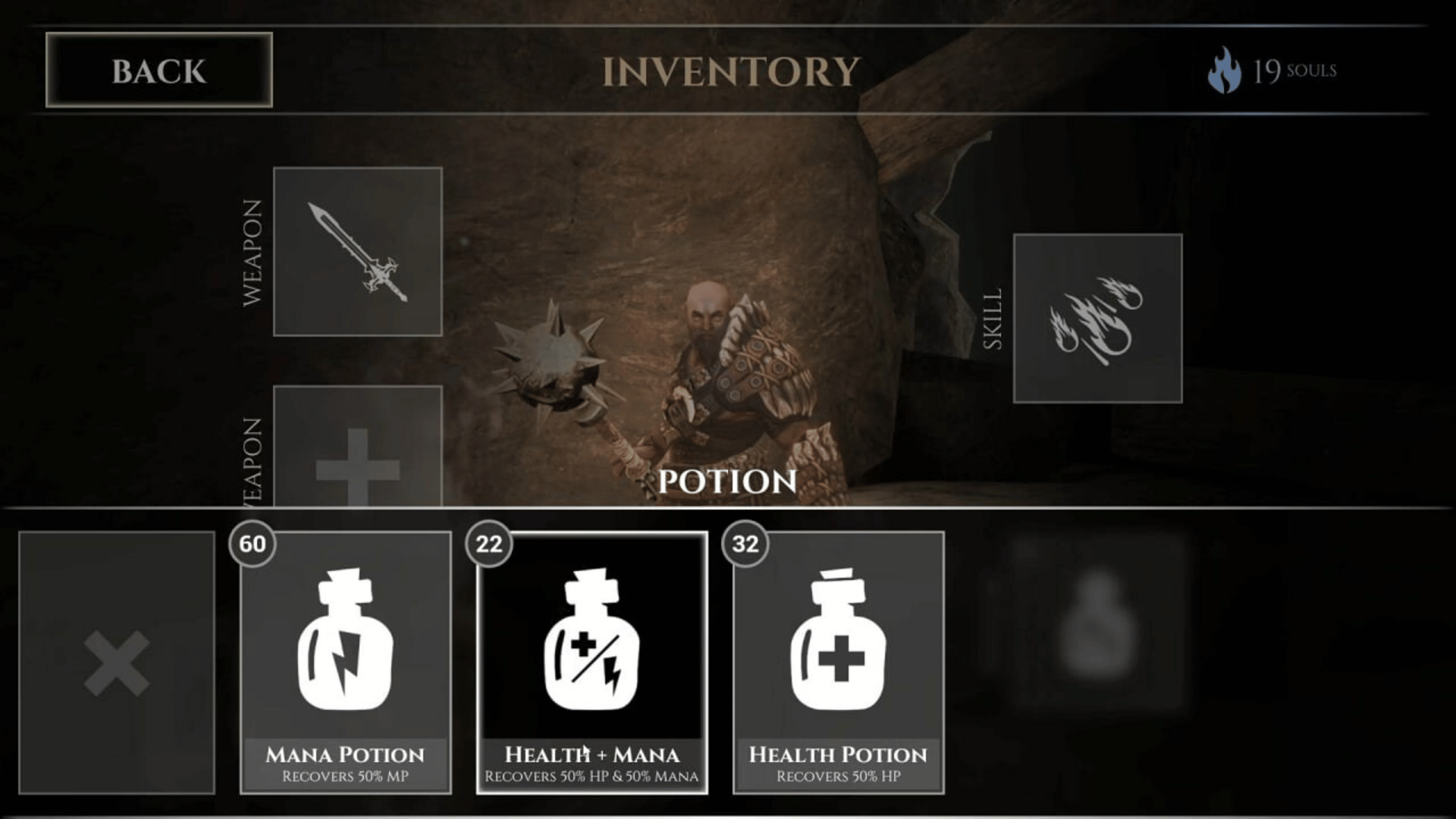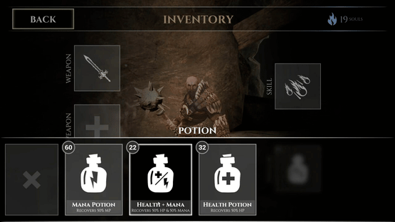 Try to survive if you can! Soul's like a third-person action game. There are four skills and six types of weapons available, plus bonus weapons that fall from mobs and have a limited number of hits. Three types of potions. All acquired skills, weapons and potions are saved.
