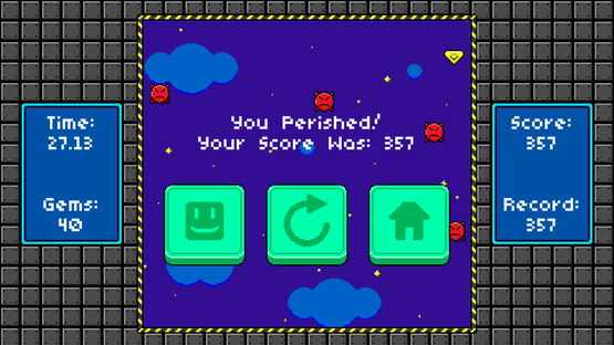 Gravity Box is a retro-styled score attack game that requires the player to frantically swap gravity in order to avoid hazards. Grab the gems, unlock cool costumes, and see how long you can last!
