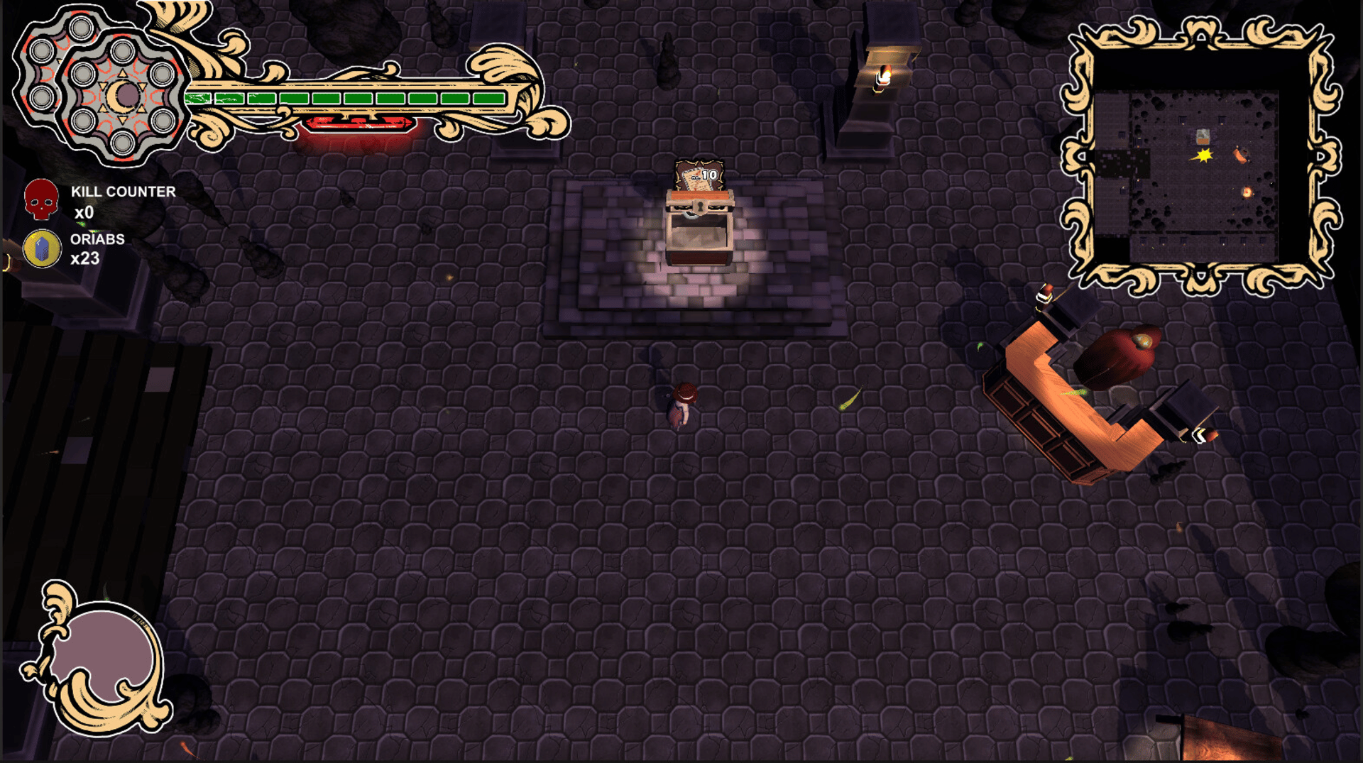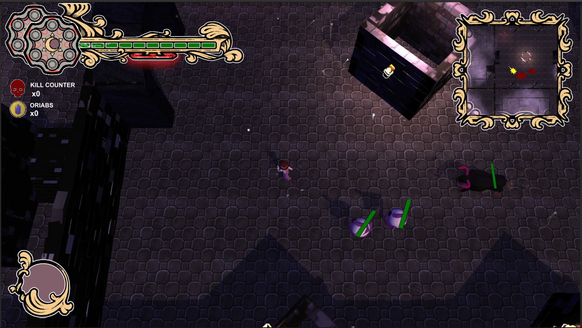 Whispering Abyss is a top-down rogue-like in the setting of Lovecraftian horror. Play as Grace as you navigate the treacherous abyss and rid Dululth of its monsters with your trusty dual revolvers! Descend into the madness in a procedurally generated abyss, collecting loot to aid your quest.