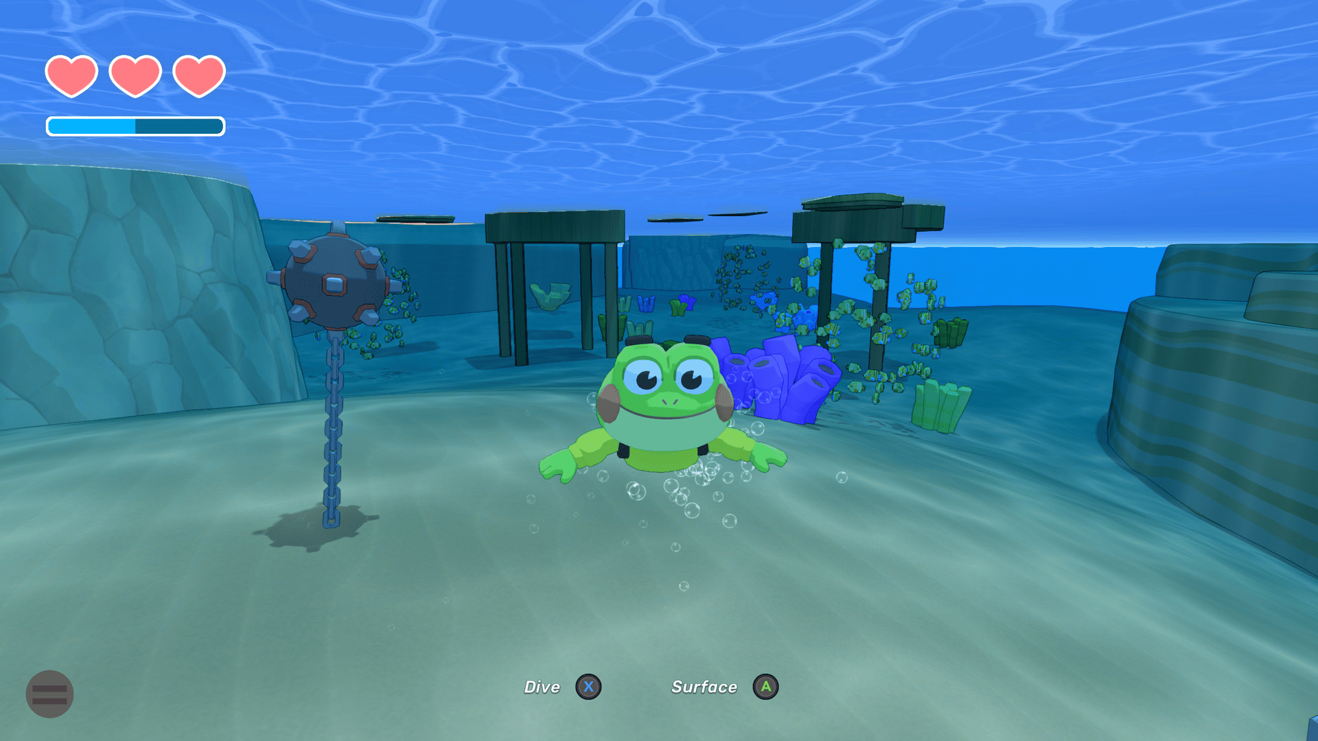 Big Hops is a fresh and froggy action-platformer focused on deep movement and emergent gameplay! Use parkour and your tongue to explore 8 huge, colorful worlds full of charming animal friends. Discover a huge range of surprising, playful interactions with gadgets and veggies!