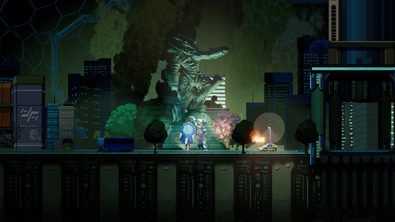 Eagle knight paradox takes you (the player) into a doble experience, one of them is the role of a powerful mecha trying to protect a space city from space fanatics. On the other hand, the game sets you as the role of Ian (the pilot) building relationships around the city or whats left of it.