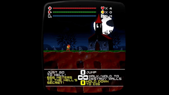 Just go to hell and find out it's secret in this ultimate puzzle/arcade/platform game. You have to dig all the way down through caves filled with water, lava, boulders and enemies. You can avoid suffocating and kill enemies controlling flow of water and lava by digging holes in walls of caves. You can also push a boulder on the filthy worms and bats.