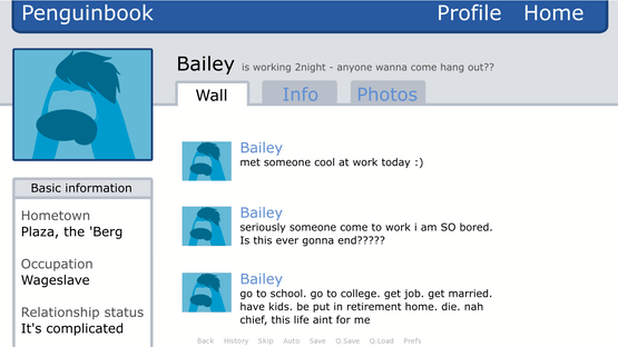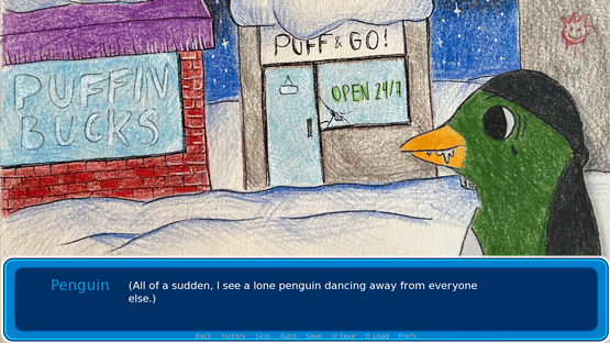 Crush Penguin is a visual novel where you must romance one of four penguins, each with their own personalities and ambitions. To offer you a unique experience the entire game is hand drawn from scratch.