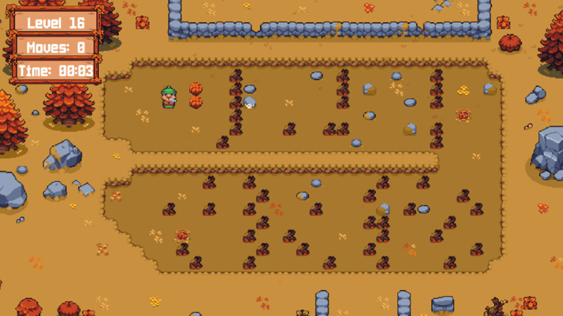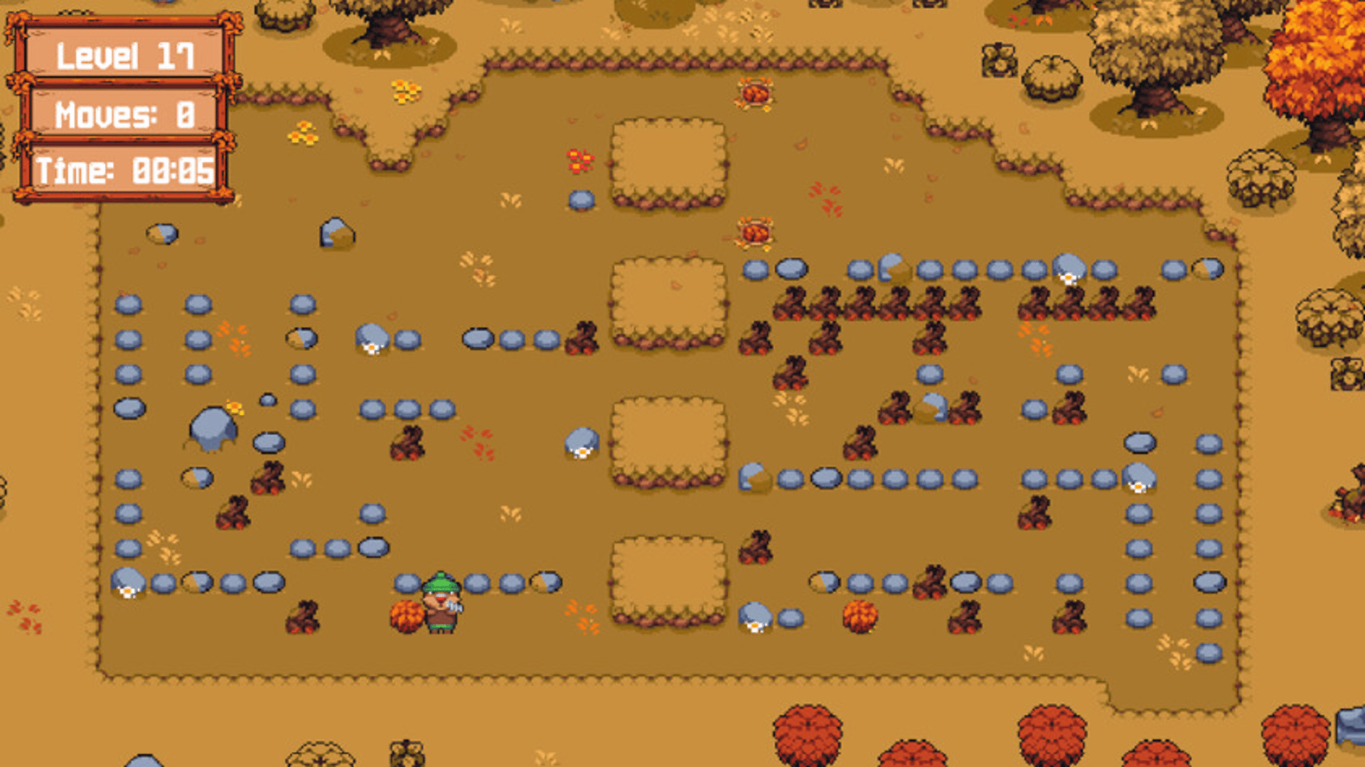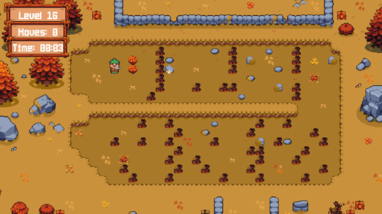 It's Fall and leaves won't stop falling! Bear's newest job is cleaning the lawns of the neighbourhood. Solve the sokoban style puzzles pushing bundles of leaves away. Clean fields mean a merry forest folk!