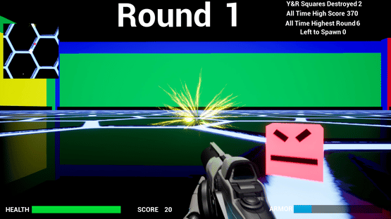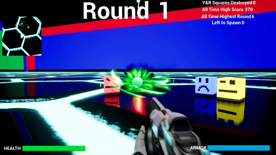 Square Round's is a Shooter Survival Round based game. Can you survive all 350 rounds? If you can, you shall be compared to a Legend. Game difficulty increases. Saves your High score and High Round to try to beat your own records. There is a Armor and Health system.