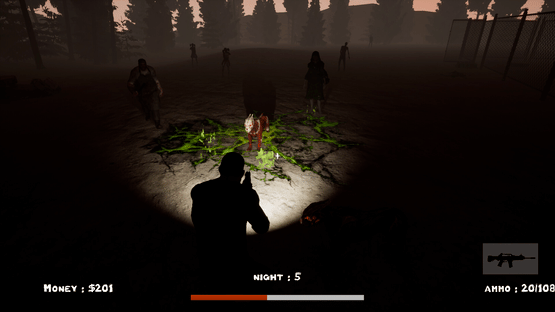 Test your survival skills in this third person shooter. Defend your base against a never ending zombie horde. Try different tactics and see how many nights you can survive in "Endurance Mode".